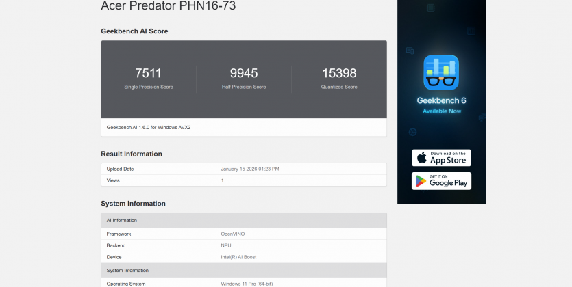 - 7 Робоча продуктивність Acer Predator Helios Neo 16 AI
