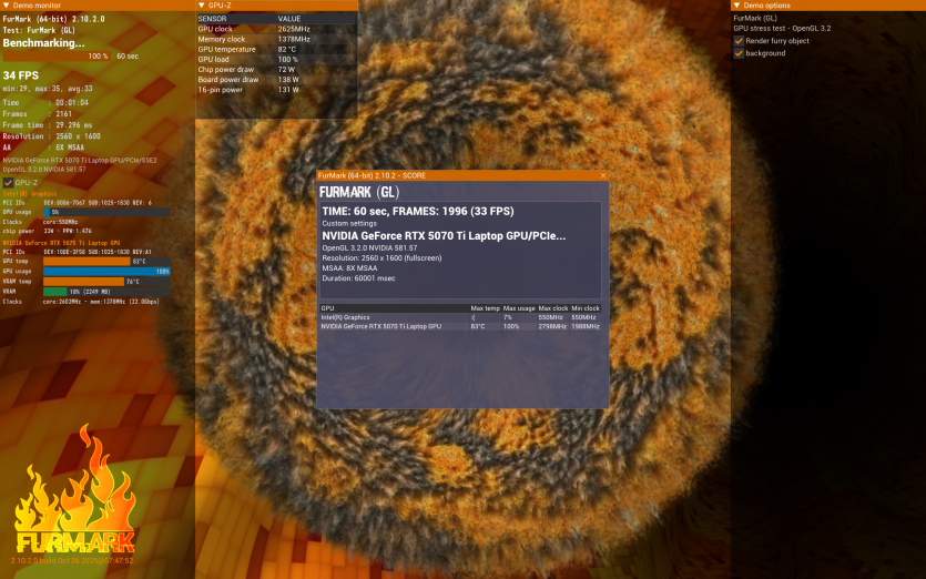 Acer Predator Helios Neo 16 AI в іграх демонструє очікувано високі результати для сучасного продуктивного ноутбука, але ці цифри мають свою ціну. Тести проводилися з максимальними налаштуваннями графіки, з використанням апскейлерів і Multi Frame Generation у рідній роздільній здатності 2560 на 1600 пікселів.