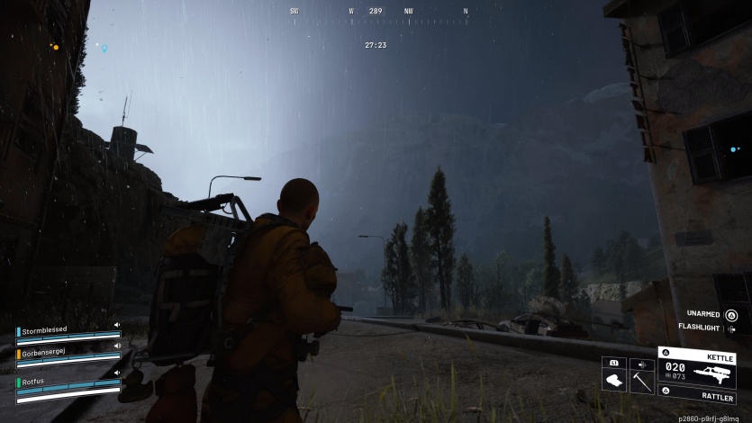 Освітлення в ARC Raiders теж на висоті. Особливо це помітно під час нічних рейдів, коли світло ліхтарика вириває з темряви силуети занедбаних будівель, а десь вдалині миготять червоні вогники патрулів роботів. Додає атмосфери й динамічна погода. Наприклад, дощ створює калюжі з відображеннями та заливає краплями екран, електромагнітні бурі спотворюють картинку статичними помилками, а туман обмежує видимість і змушує грати обережніше.