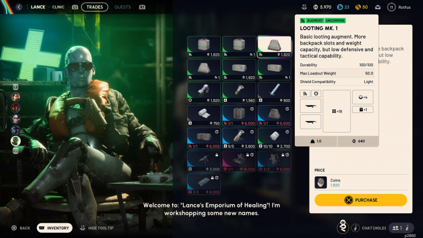 На базі є й торговці. Вони не тільки можуть продати цінні речі, а й видати цікаві квести. Виконання завдань приносить досвід, валюту та унікальні нагороди. Самі ж квести простенькі: принеси X ресурсів, вбий Y роботів, досліди локацію таку то, сфотографуй це. Але вони добре мотивують досліджувати карти та не сидіти в одному місці.