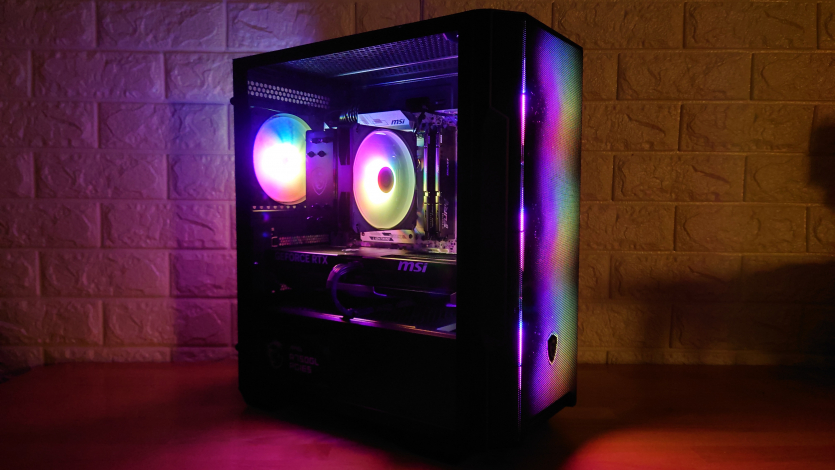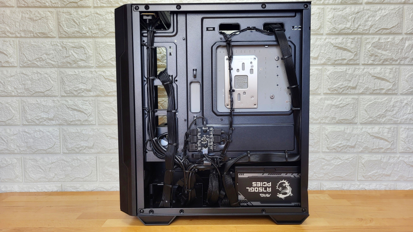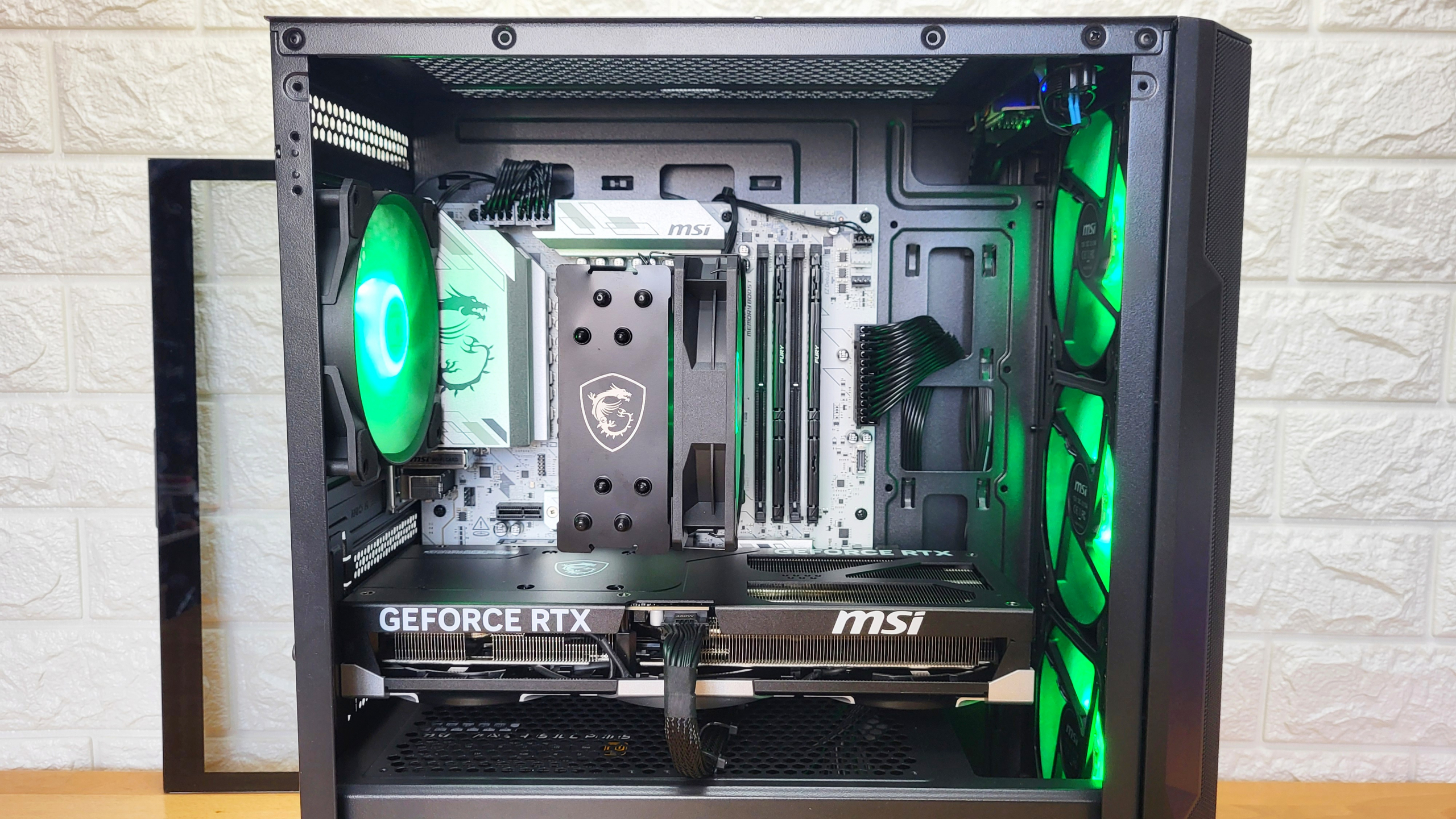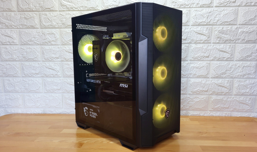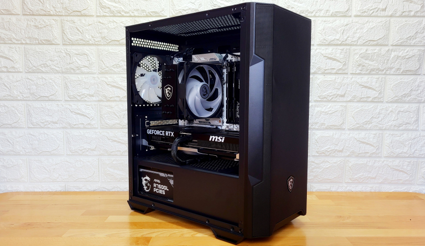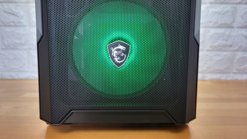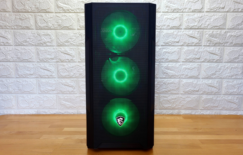 Збірка укомплектована в корпусі MAG FORGE M100R. Він вже не раз потрапляв під приціл у наших оглядів. Шасі вирізняється лаконічним стилем, але з геймерськими нотками. Бокова панель із загартованого скла відкриває вид на внутрішні компоненти з бадьорою RGB-підсвіткою.
