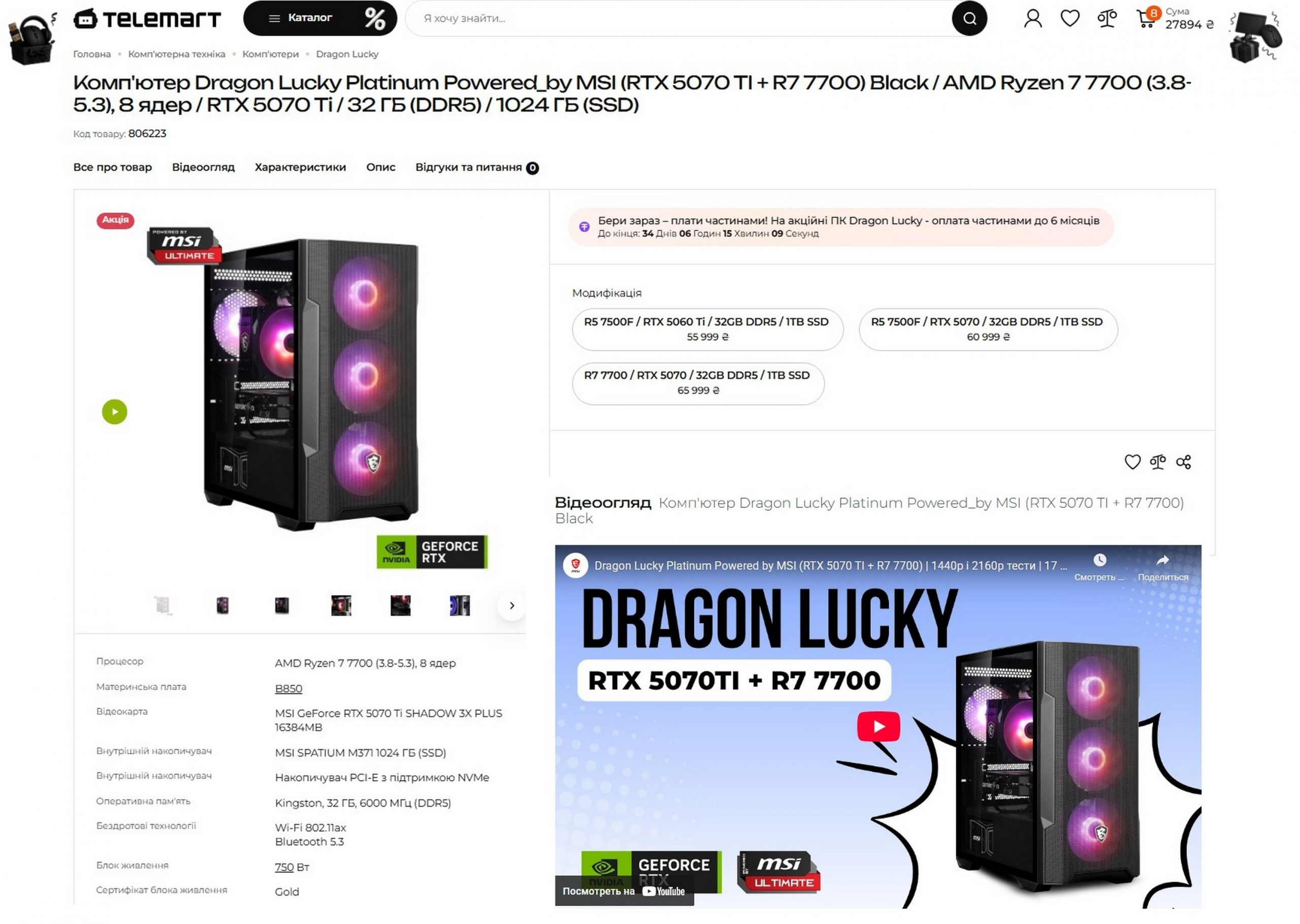 Обрати свою збірку ПК Dragon Lucky можна за посиланням
