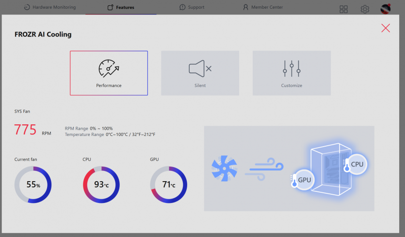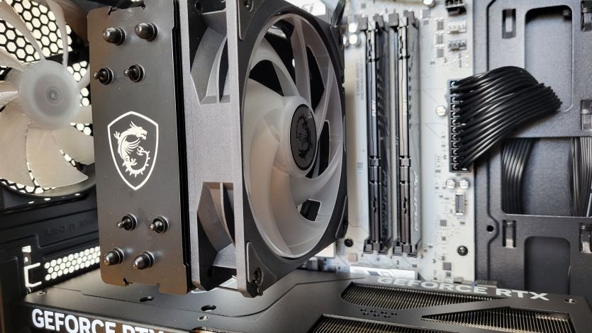 Баштовий кулер MSI MAG COREFROZR AA13 Black в цілому справлявся з охолодженням CPU в іграх, хоча при тривалих робочих навантаженнях температури підіймалися до високих показників.