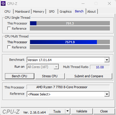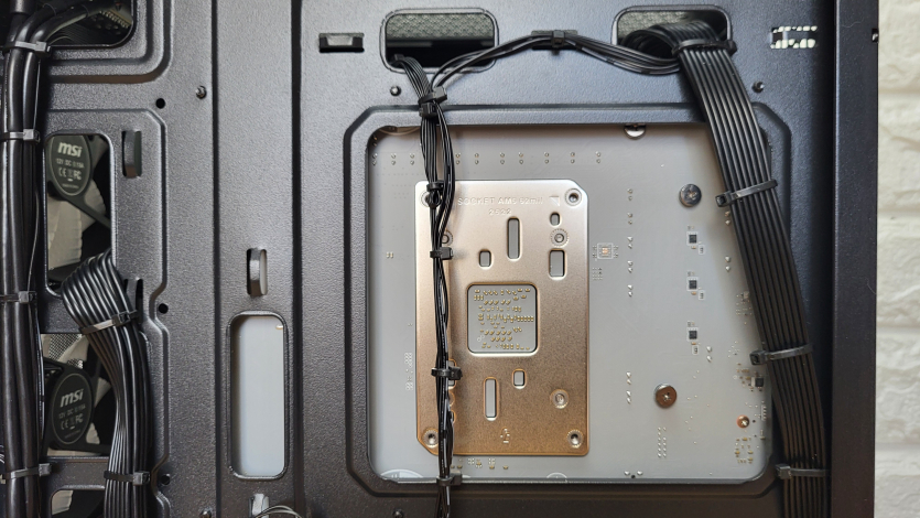 Збірка базується на процесорі AMD Ryzen 7 7700. Це 8-ядерний CPU з 16 потоками, заснований на архітектурі Zen 4 і призначений для сокета AM5. За свою ціну він добре підходить для ігор та робочих багатозадачних сценаріїв. Його заявлене енергоспоживання становить 65 Вт, хоча в пікові моменти перетинає 100-ватну позначку. Процесор має 32 МБ кеш-пам’яті L3.