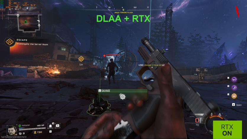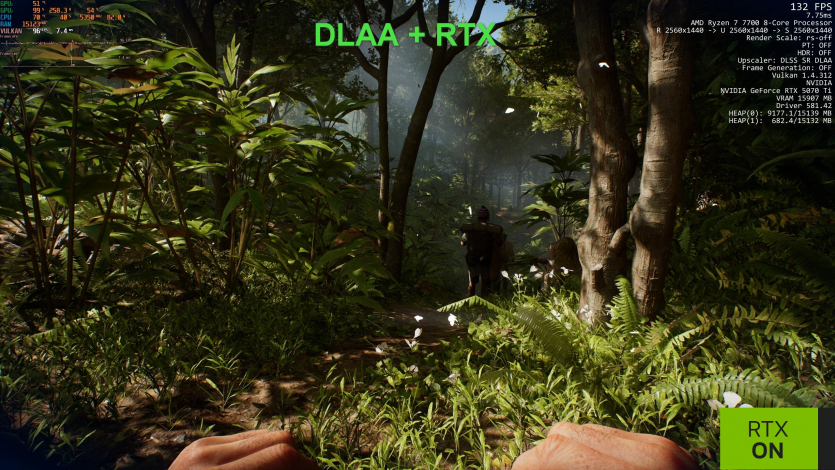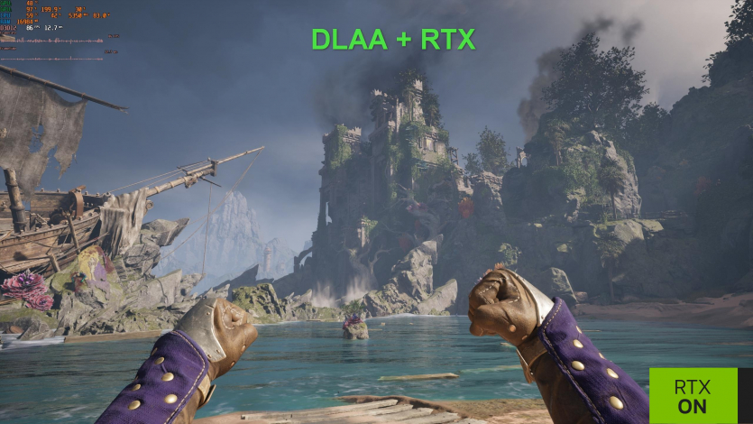 - Deep Learning Anti Aliasing (DLAA) заміняє собою класичні алгоритми згладжування на основі штучного інтелекту. Технологія робить об’єкти в іграх гладкішими та прибирає пікселізовані драбинки, що оцінять фанати максимальної візуальної гейместетики.