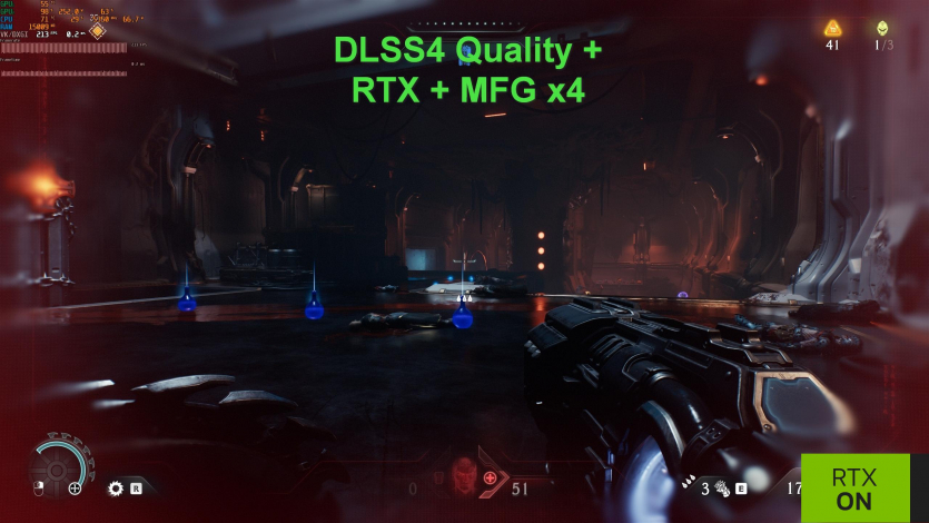 Особливо вражають результати в Doom: The Dark Ages з Path Tracing. Мультикадрова генерація перетворює ледь грабельні 40 FPS на комфортні 201 к/с. Це яскравий приклад того, як DLSS 4 робить доступним геймінг з повним трасуванням променів навіть у найвимогливіших проєктах.