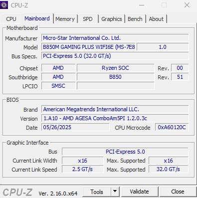 | Материнська плата | MSI B850M GAMING PLUS WIFI6E |