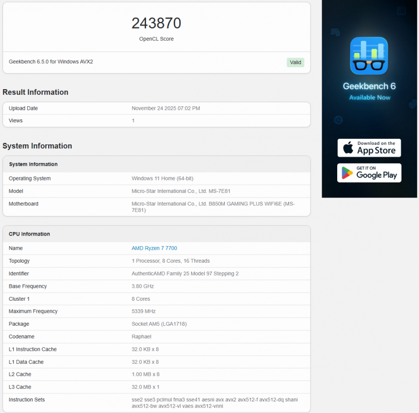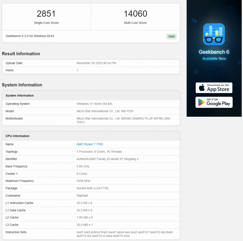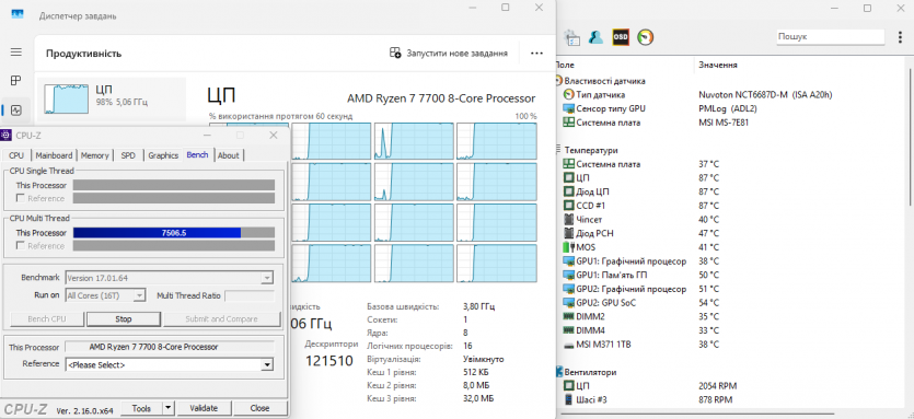 | Процесор | AMD Ryzen 7 7700 (8 ядер / 16 потоків, 32 МБ L3) |