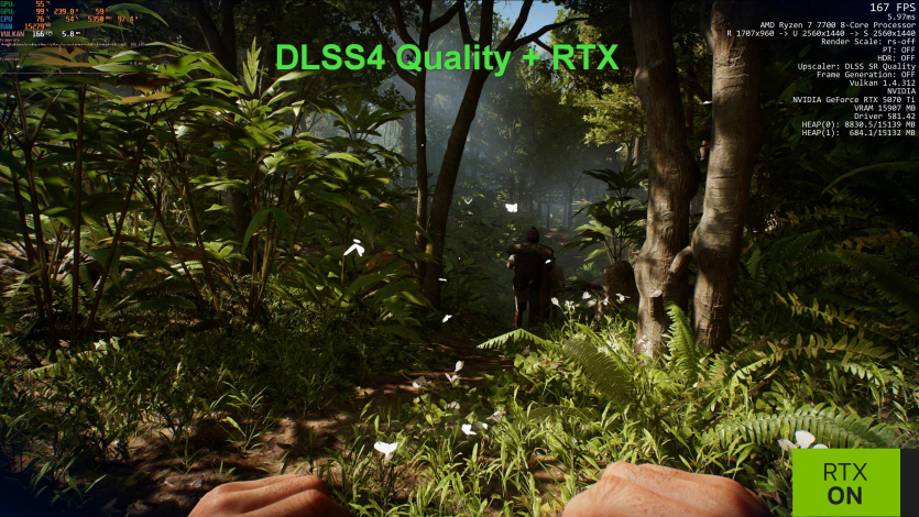 Важливо зазначити, що саме DLSS 4 зробив доступнішим геймінг з увімкненим RTX та Path Tracing. Раніше трасування променів суттєво знижувало продуктивність навіть на топових відеокартах, але завдяки Multi Frame Generation та покращеному Super Resolution тепер можна насолоджуватися реалістичними тінями та глобальним освітленням без критичних втрат у плавності.