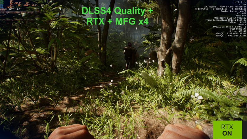 Особливо приємно, що якість зображення при використанні DLSS Quality залишається на високому рівні, картинка виглядає чітко та деталізовано. А Multi Frame Generation дає можливість повністю розкрити можливості швидкісних ігрових моніторів та отримати зовсім інший user experience.