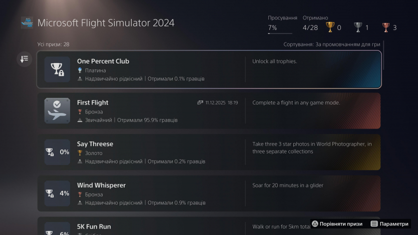 Також варто бути готовим до довгих завантажень. Приблизно три хвилини йде на старт гри, і ще близько хвилини-двох безпосередньо перед початком польоту. Це не особливість PS5, адже так поводиться Microsoft Flight Simulator 2024 на всіх платформах. Проте після швидких завантаженнях у сучасних консольних ігор до такого темпу доводиться звикати.