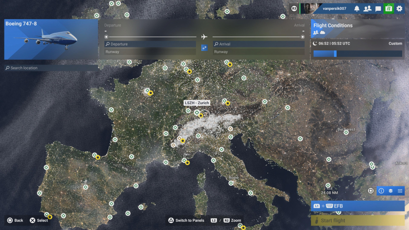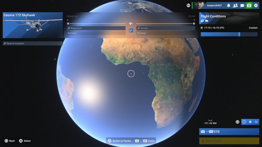 Найслабшим місцем MSFS 2024 на консолі, що на ПК, все ще залишається інтерфейс. Він виглядає досить дешево і на практиці виявляється громіздким і не надто зручним. Sim Update 4 помітно прискорив роботу меню, однак сама логіка навігації, особливо під час підготовки вільного польоту, потребує серйозного перегляду. Процес вибору аеропорту через екранну клавіатуру, повернення назад і подальший скролінг здається неінтуїтивним. З огляду на те що консольний сегмент від початку був однією з цілей платформи, хотілося б більш відшліфованого рішення.