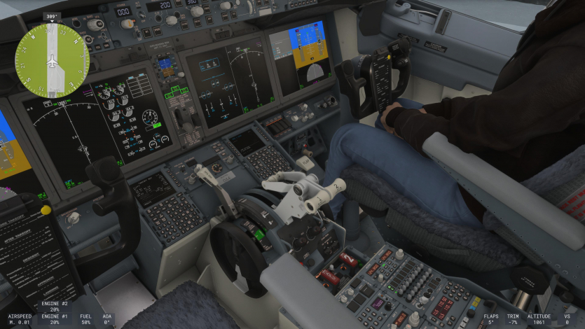 Авіасимулятори традиційно вимагають великої кількості кнопок і осей керування. Для невеликих літаків поточна схема ще цілком придатна, але з великими авіалайнерами ситуація ускладнюється — особливо без миші, до якої користувачі ПК давно звикли. У цьому контексті здається, що Microsoft не до кінця скористалася можливостями вбудованого тачпада DualSense як повноцінного аналога курсора. За замовчуванням для активації режиму миші потрібно натискати окремі кнопки, а потім знову перемикатися назад до керування літаком. Під час спокійного крейсерського польоту це не проблема, але в напружених фазах зльоту чи посадки така схема створює зайвий стрес і неплановані натиски.