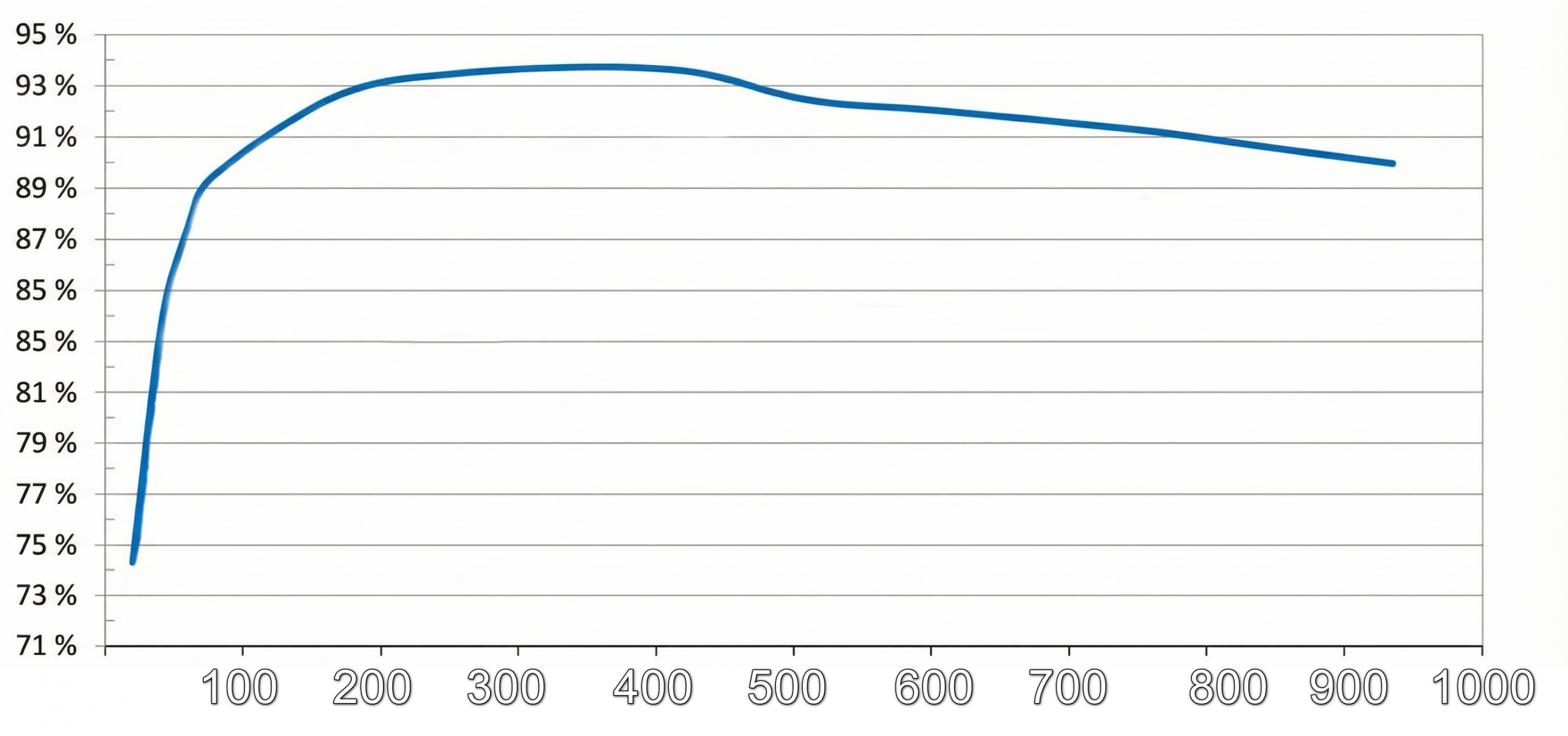 Тести підтверджують відповідність сертифікації 80 PLUS GOLD. На всьому проміжку потужності від 20 до 75% ефективність трималася позначки 90%.