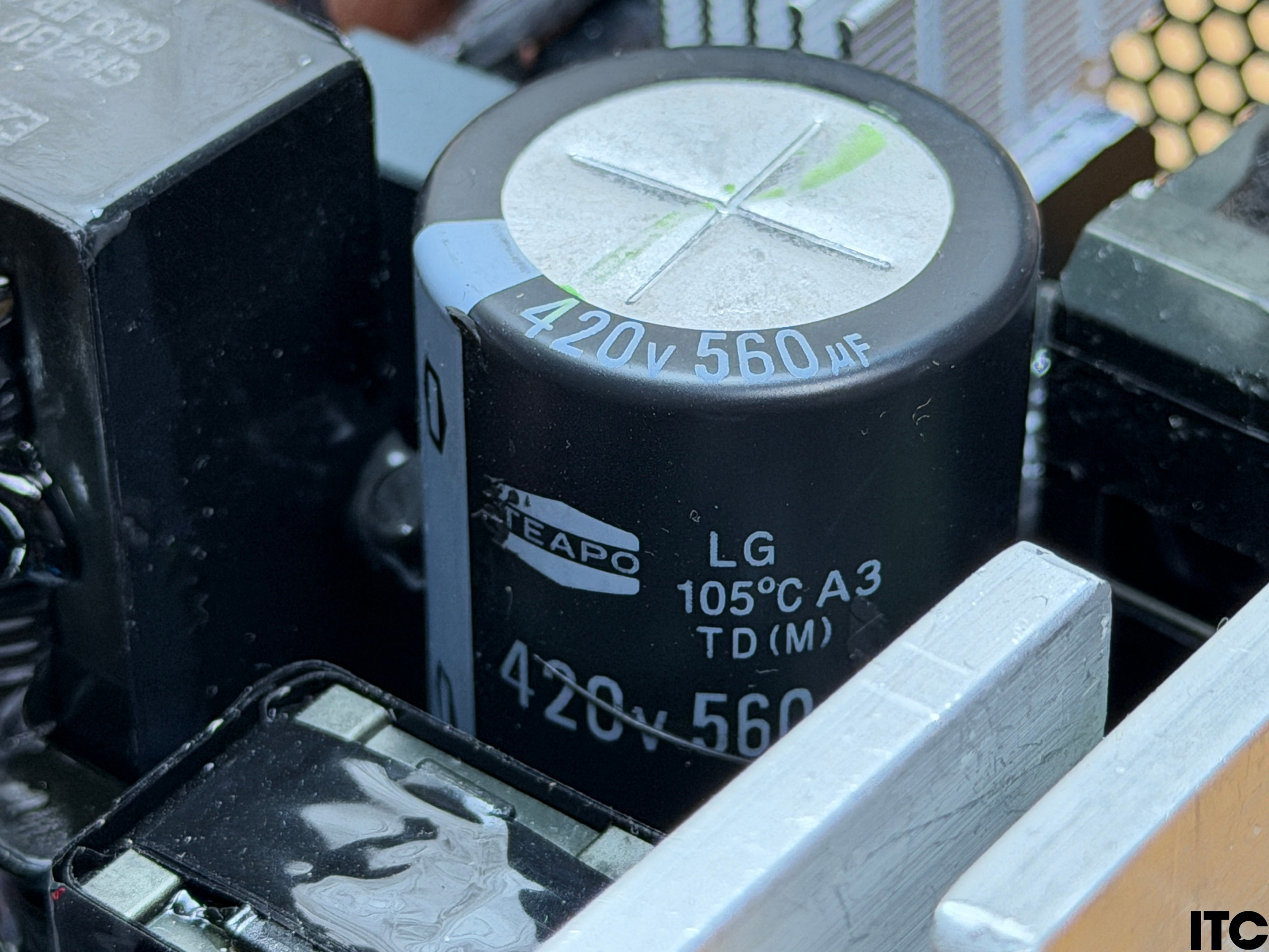 Перший “удар фільтрації” бере на себе електролітичний конденсатор TEAPO ємністю 560 μФ. Звісно, на його місці хотілося б бачити аналог японського виробництва. З усім тим, він здатний працювати в робочому діапазоні до 105 °C.