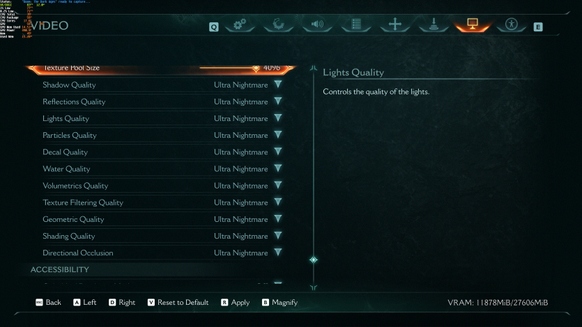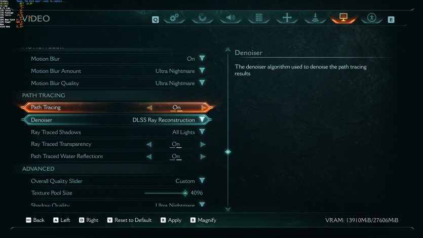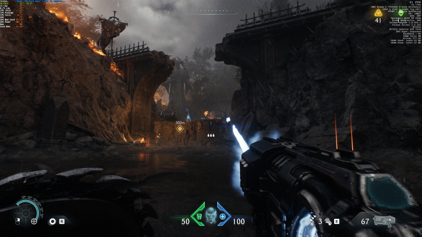 Одним з найважчих режимів — Nightmare в грі Doom: The Dark Ages. Трасування шляху й генерація кадрів з’їдають до 20 гігабайтів відеопам’яті та “ставлять на коліна” будь-яке залізо. З усім тим MSI MPG A850GS PCIE5 працював стабільно навіть на максимальному навантаженні.