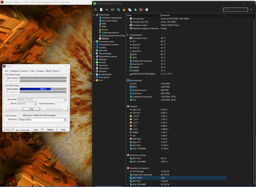 | CPU-Z + Furmark (CPU — 5,2 GHz, GPU — Default) | 712 | 11,93 | 4,96 | 3,23 |