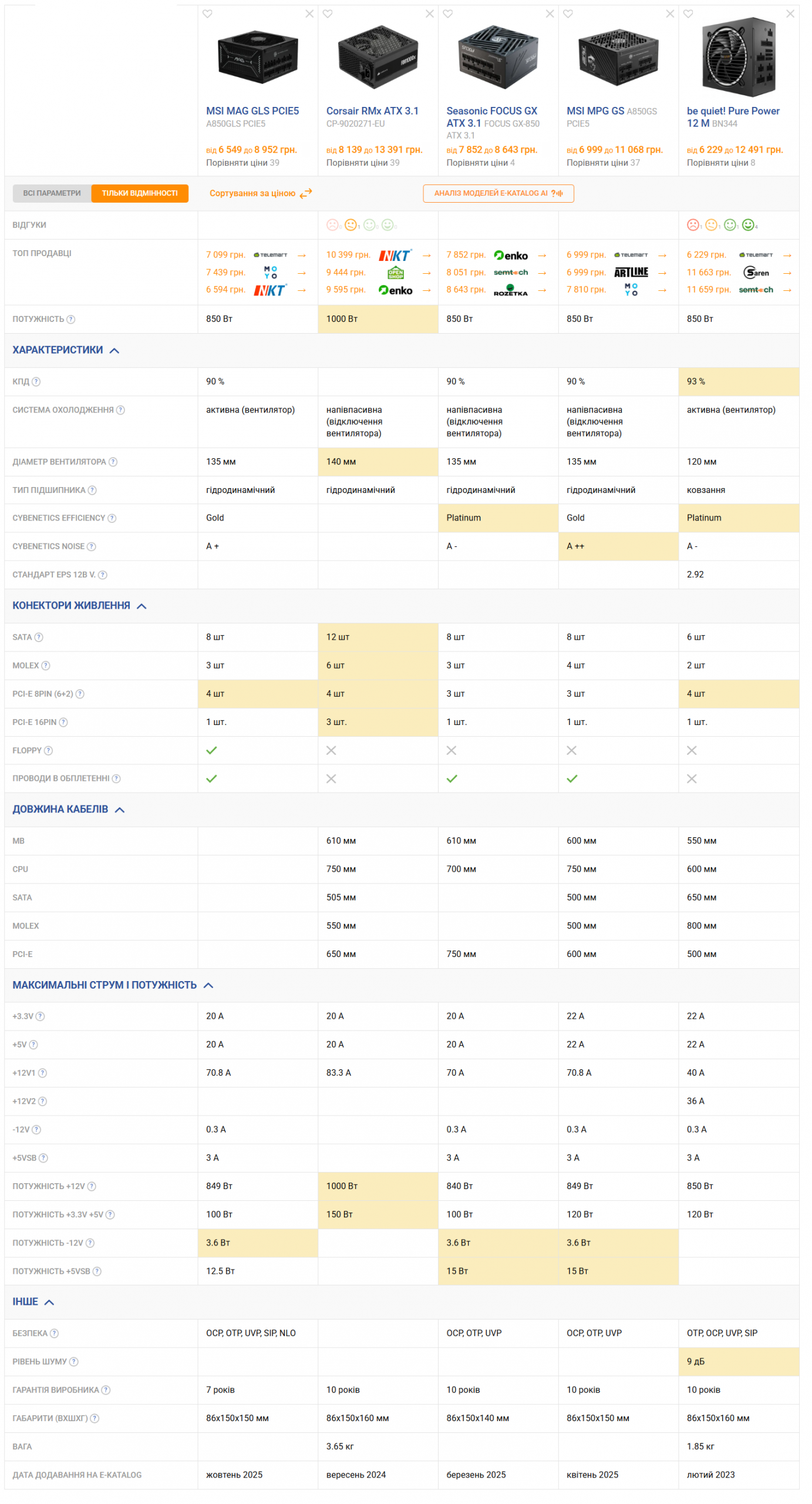 MSI MAG A850GLS PCIE5 займає своє місце в середньо-високому ціновому сегменті серед аналогів своєї потужності. Він продається за ціною від 6 549 гривень. Конкурентів тут на будь-який смак.