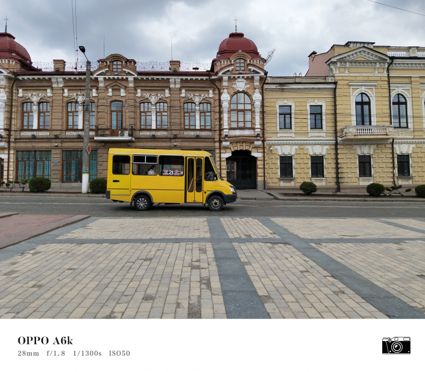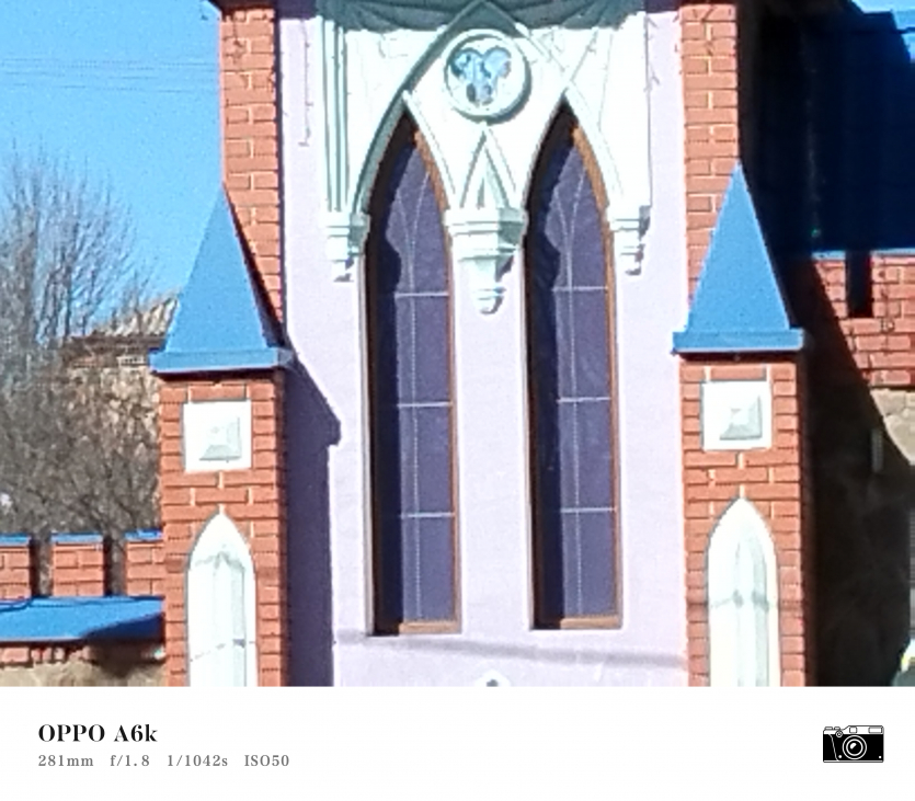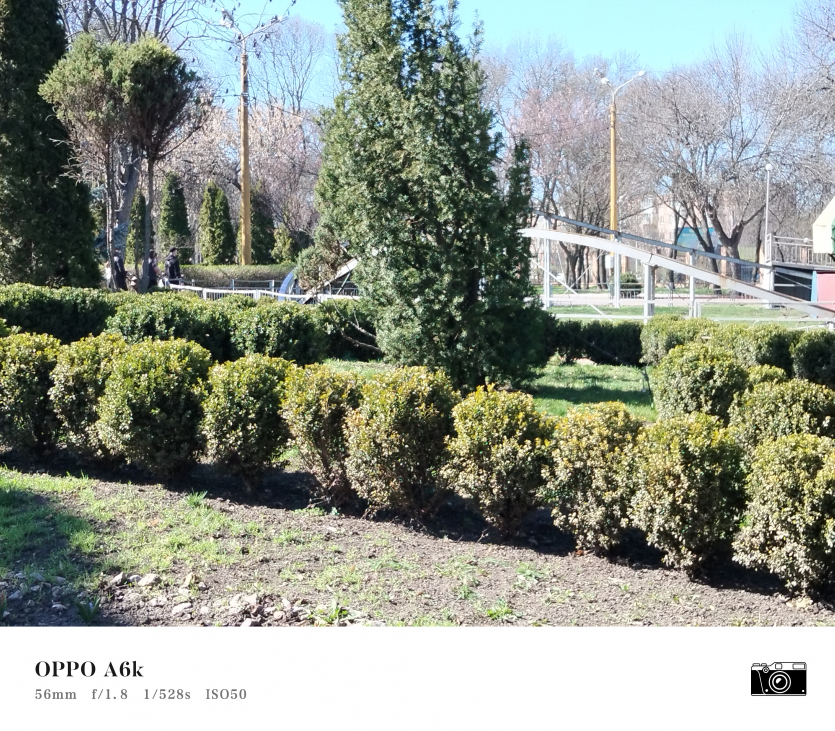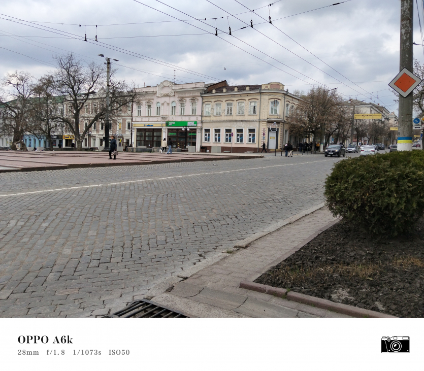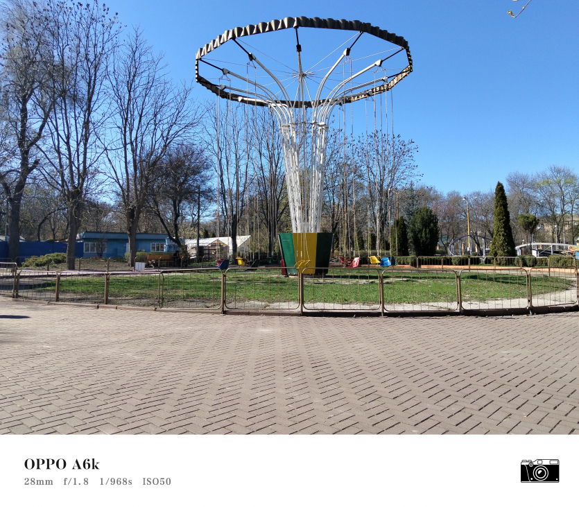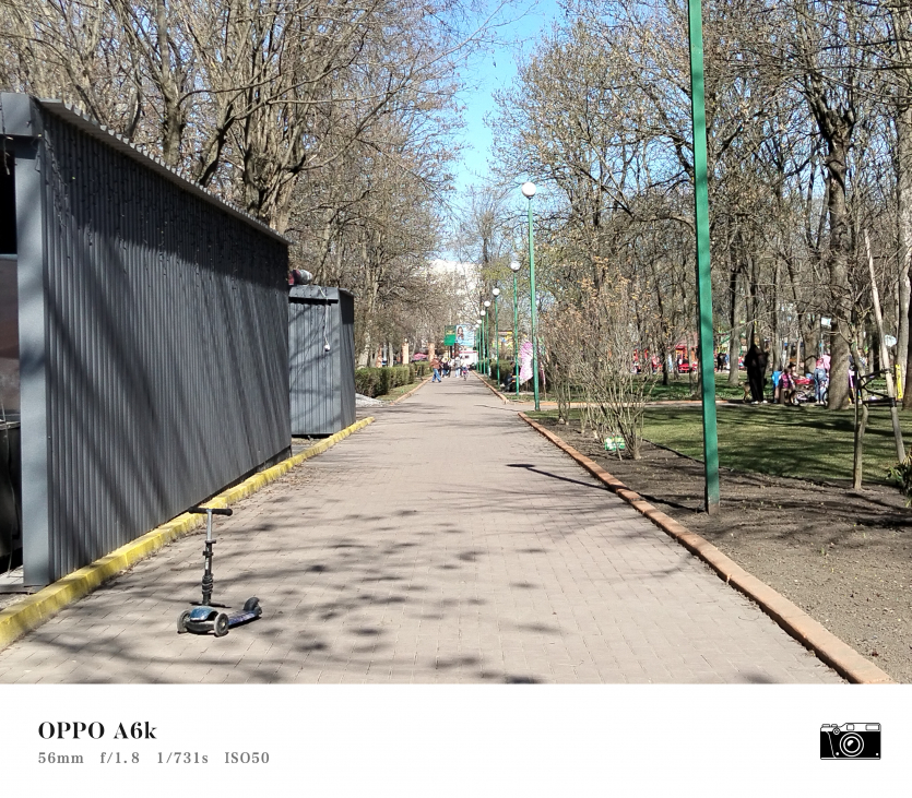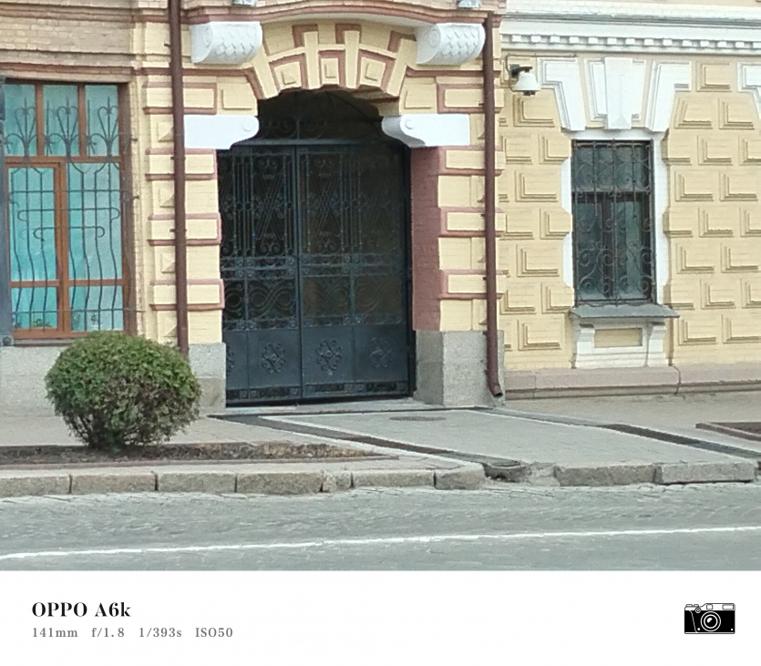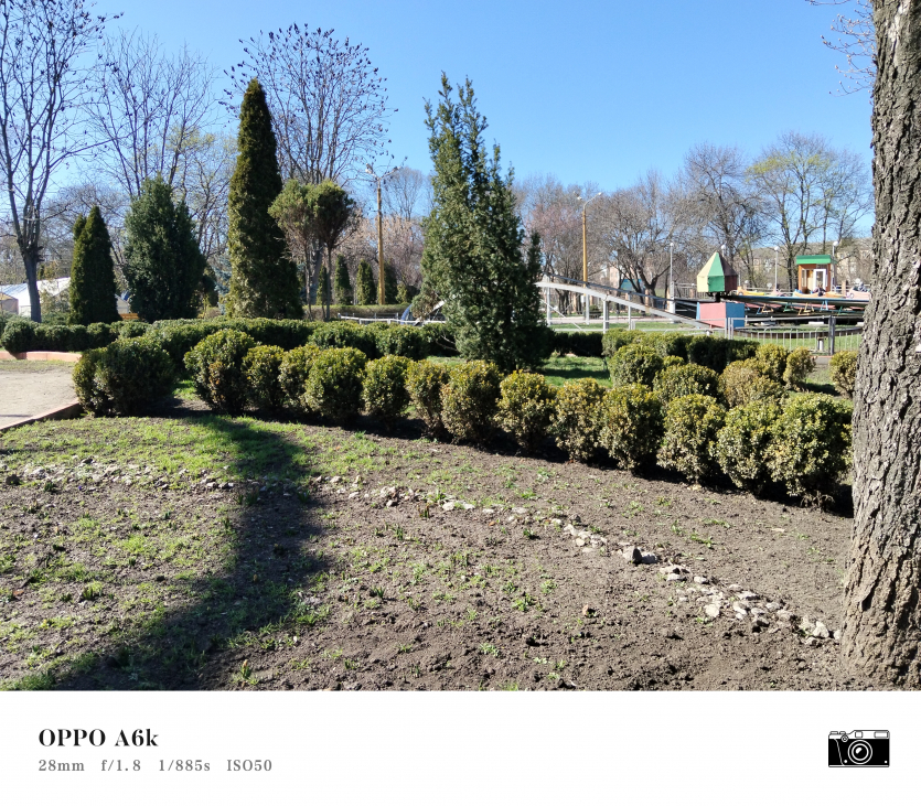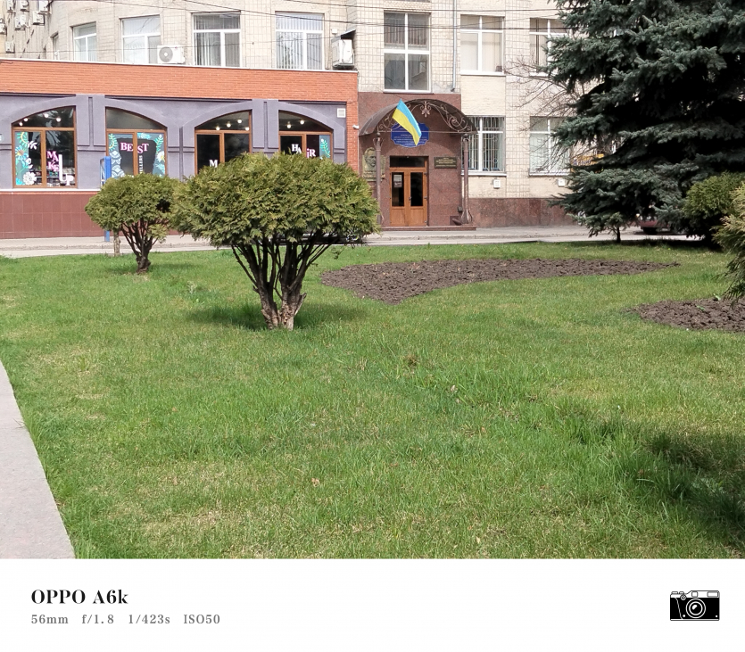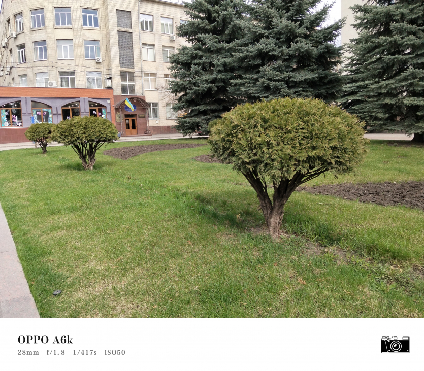 У OPPO A6k камерний блок виглядає просто і знімає аналогічно. Тут використовується класична для бюджетного сегмента схема: один основний сенсор + допоміжний модуль для глибини/контрасту.