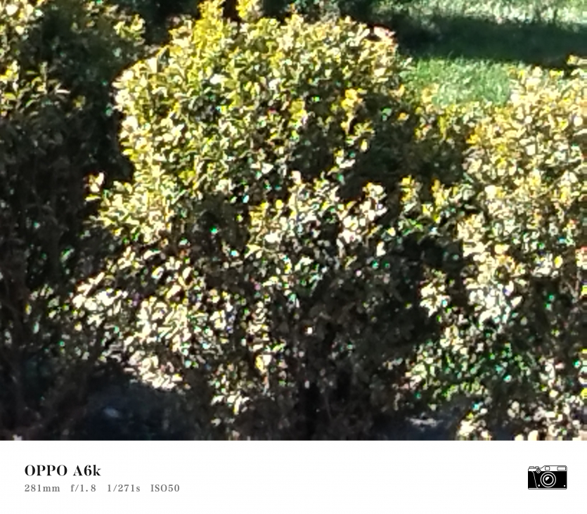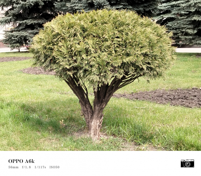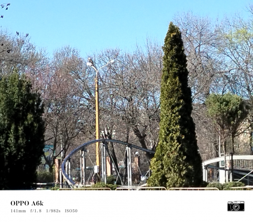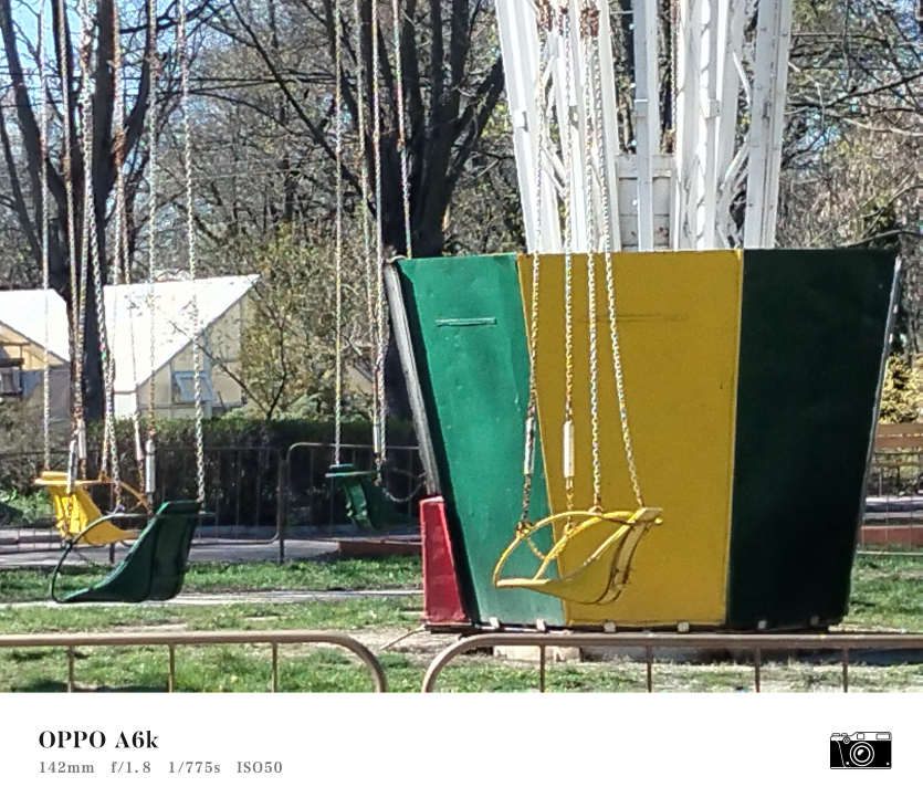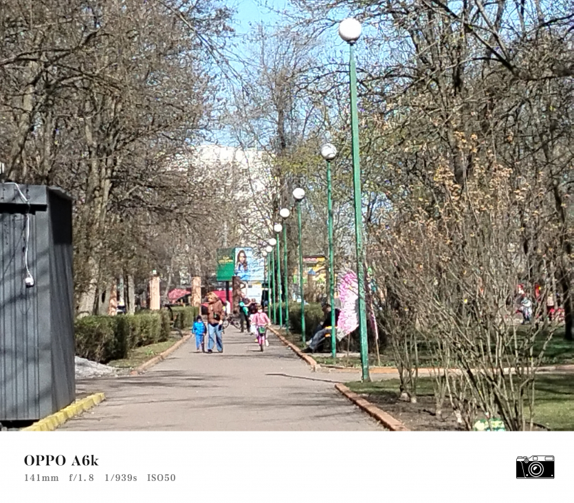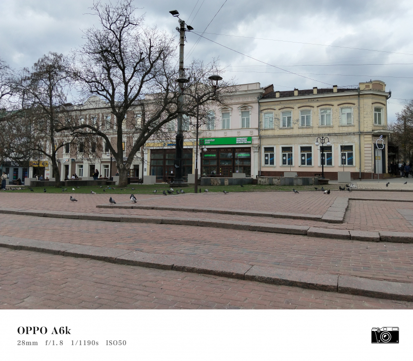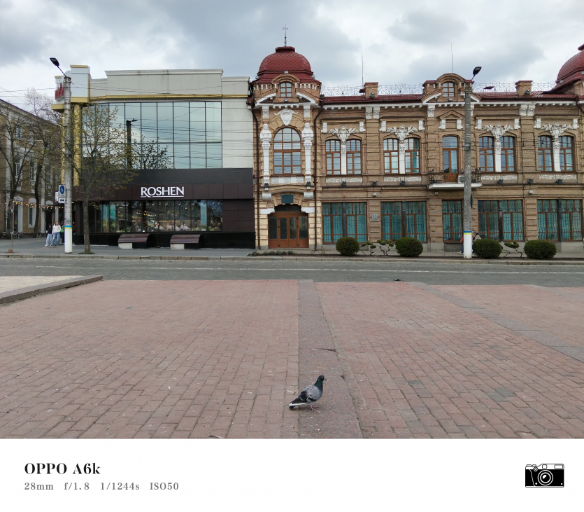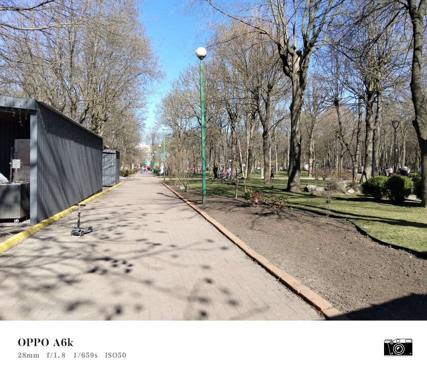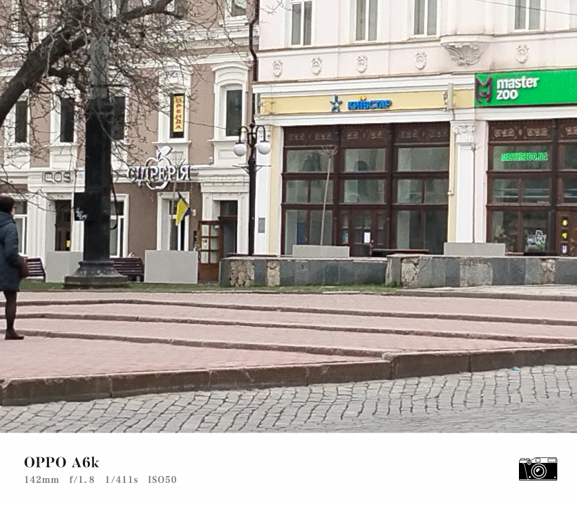 У OPPO A6k камерний блок виглядає просто і знімає аналогічно. Тут використовується класична для бюджетного сегмента схема: один основний сенсор + допоміжний модуль для глибини/контрасту.