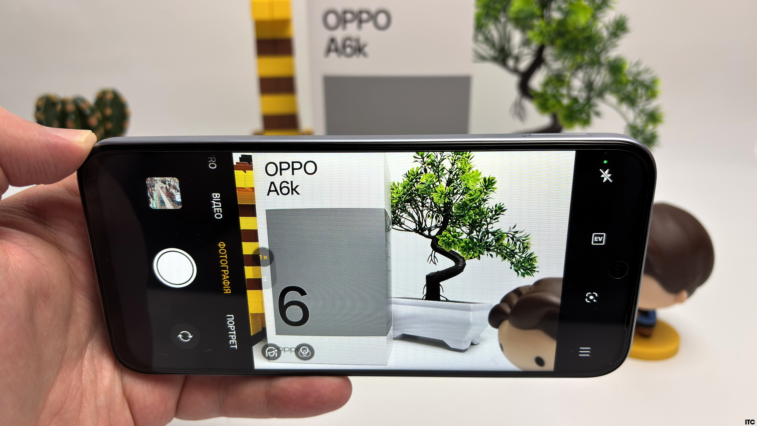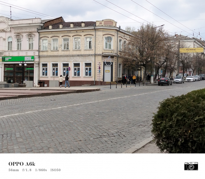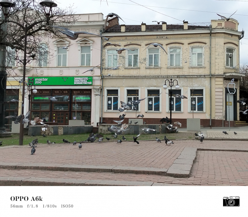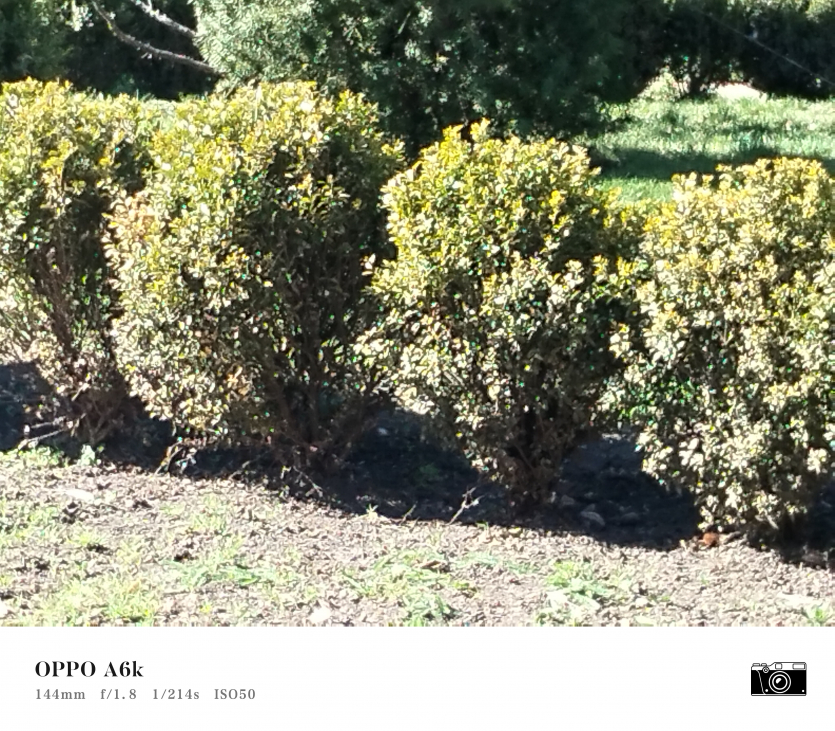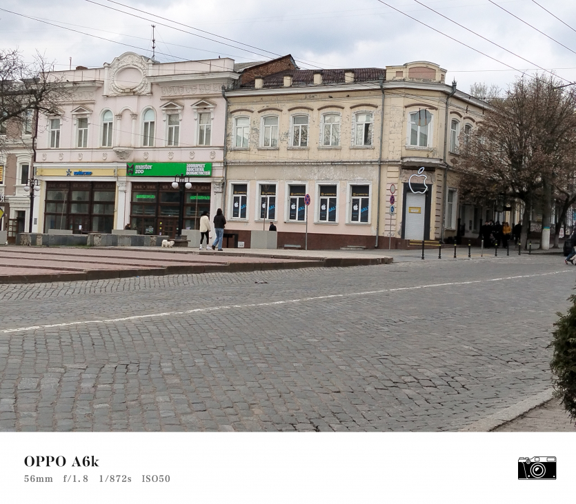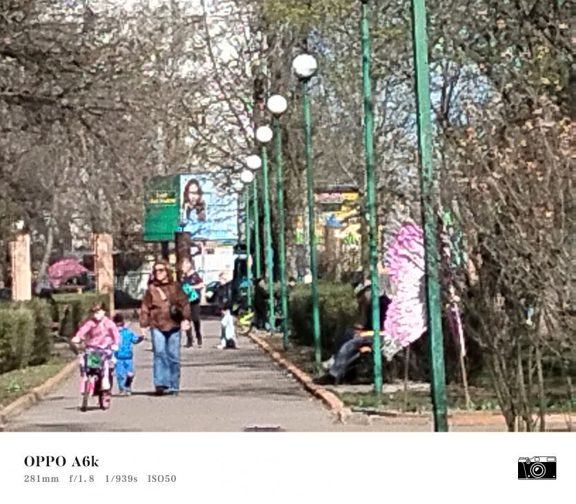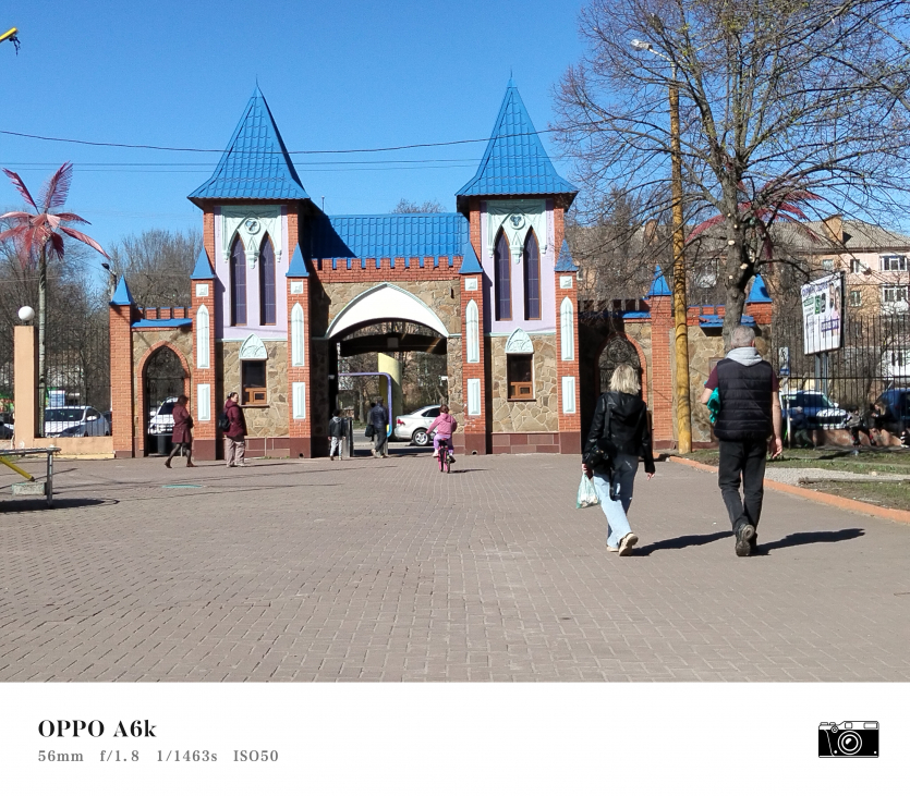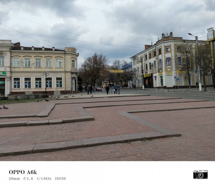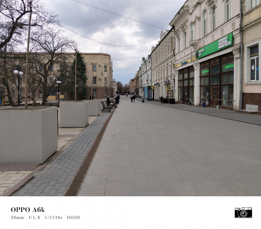 У OPPO A6k камерний блок виглядає просто і знімає аналогічно. Тут використовується класична для бюджетного сегмента схема: один основний сенсор + допоміжний модуль для глибини/контрасту.