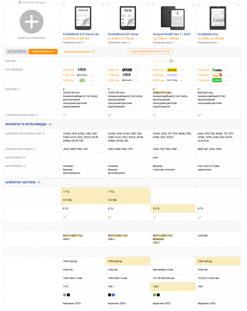 З ще дешевших є тільки якийсь ноунейм EvroMedia One (ціна від 3648 гривень), але ця електронна книга поступається по залізу та можливостям.