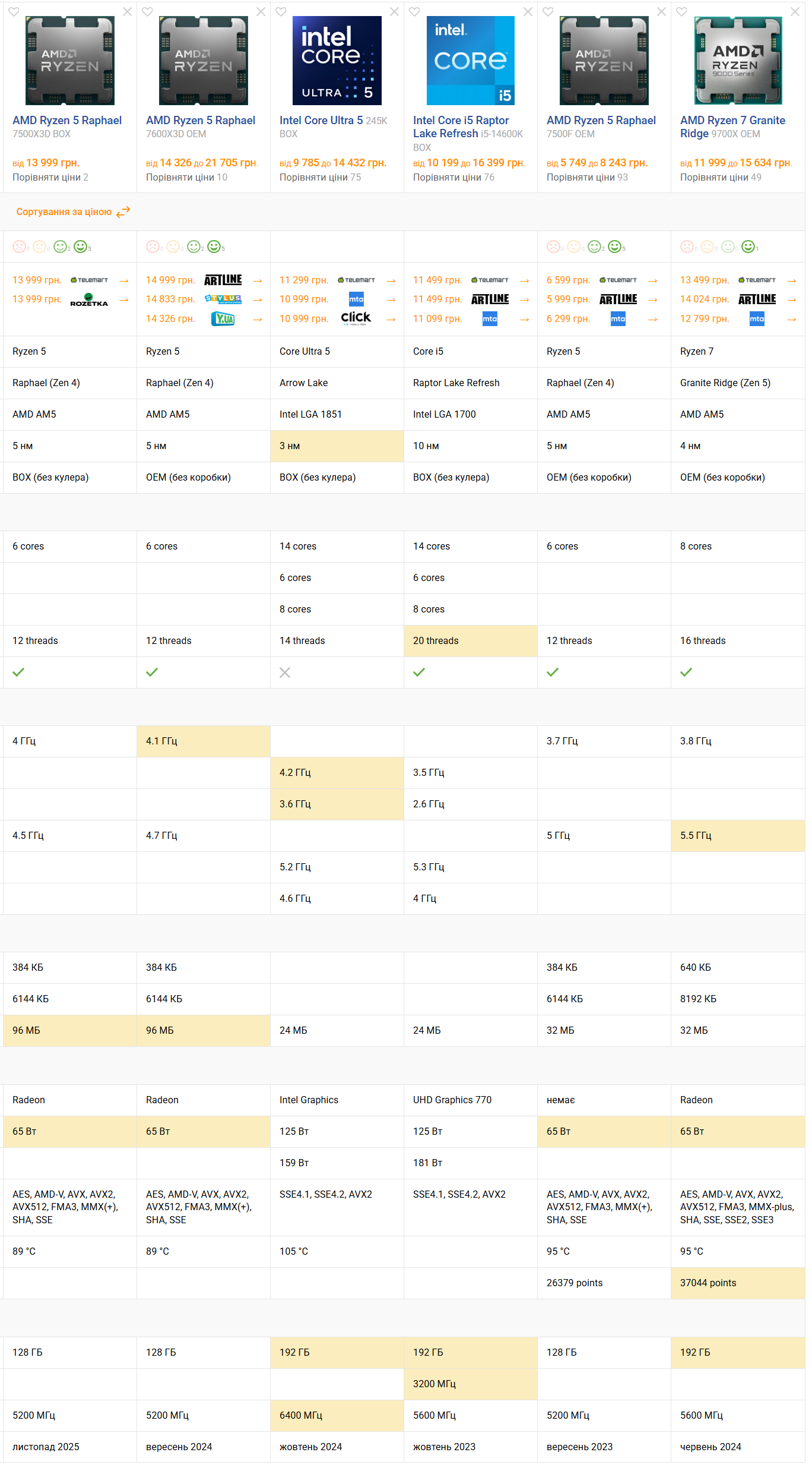 Ryzen 5 7500X3D можна придбати за 13 999 гривень. За ці гроші вистачає конкурентів не тільки серед Intel, але й серед суміжних моделей AMD.
