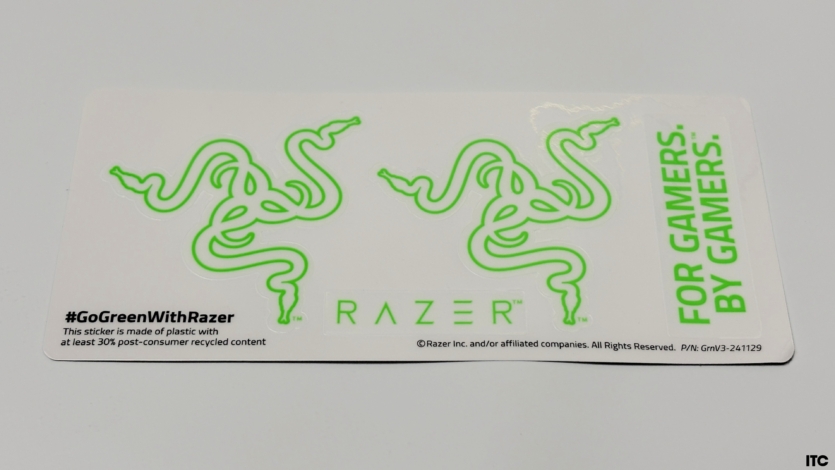 Є й набір гріпсів для кращого хвату. А додаткових “ніжок” немає, хоча от бренд Hator їх завжди додає у комплектацію. Варто згадати про наклейки з логотипом Razer. Здавалося б, дрібниця, але фанати бренду сприймають їх як обов’язкову частину комплекту. Хтось клеїть їх на корпус ПК, хтось — на ноутбук, і в результаті навіть маленький шматочок пластику стає елементом фанатської культури.
