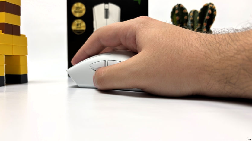 Щодо ваги, то 57 грамів для миші такого розміру — це чудово. В руці вона здається невагомою, особливо якщо переходити зі “гризунів”, що важили за 100 г. Легкість відчувається відразу в динамічних шутерах, де миша буквально “літає” поверх килимка. Водночас баланс ваги збережений: ніякого перекосу вперед чи назад немає.