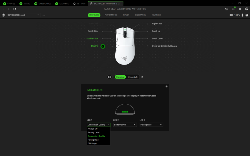 Бездротовий донгл Razer HyperSpeed Wireless Gen-2 додав у вазі й це пішло йому на користь. Він має три LED-точки, які можна налаштувати у профільному ПЗ, обравши опцію показу заряду, якості сигналу, DPI тощо.
