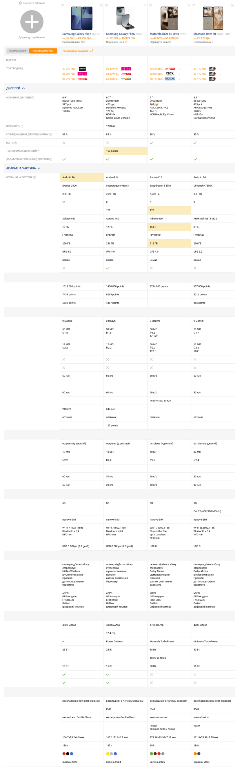 Ну й конкуренти у моделі серйозні. Наприклад, Motorola Razr 60 Ultra і це головний суперник. Його ціна починається від 42 555 гривень, але він має потужніший процесор, більшу батарею та швидшу зарядку. Якщо треба щось дешевше, але теж розкладане, то є Motorola Razr 50