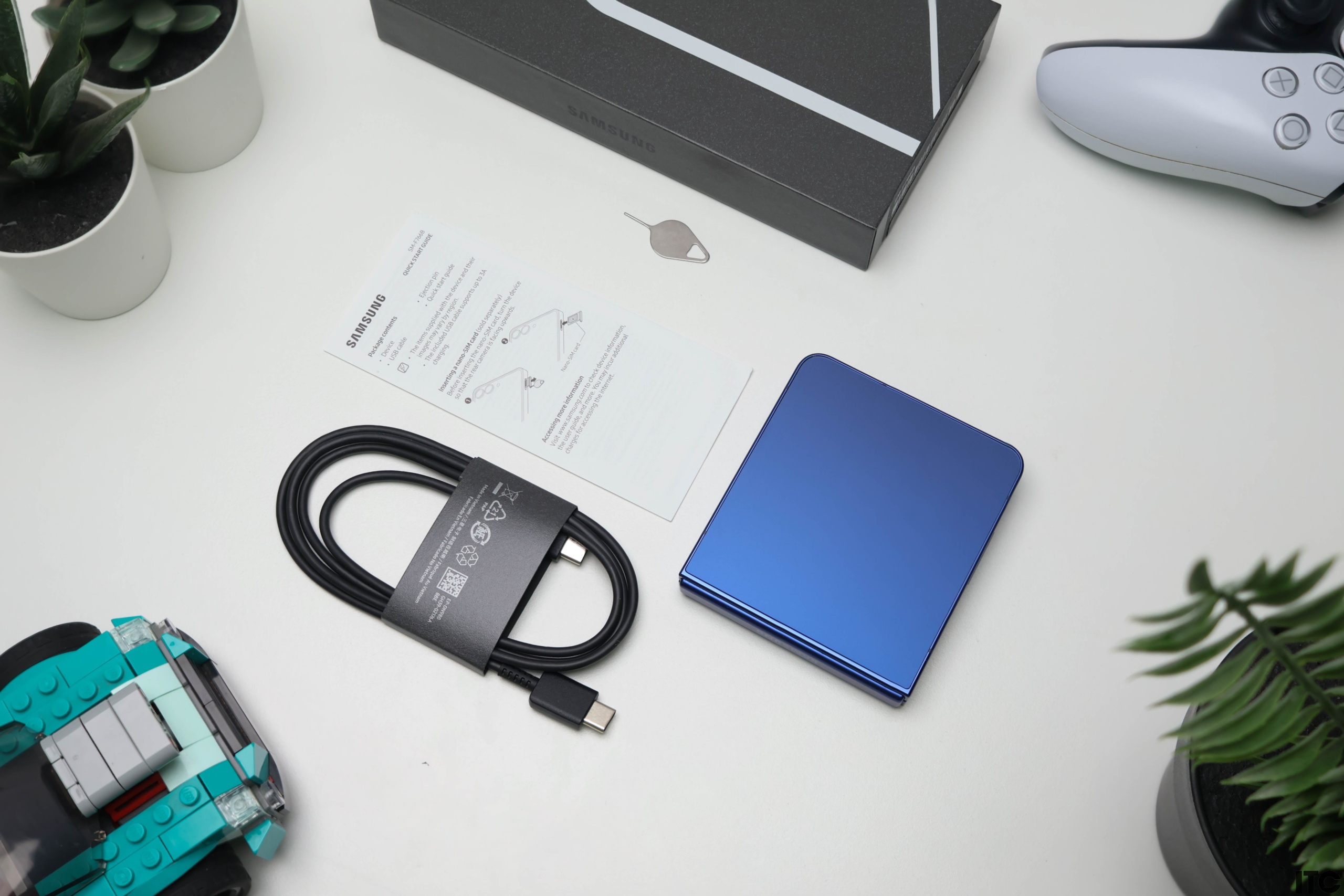 Samsung, як і багато інших виробників, продовжує політику екологічного мінімалізму, тому Samsung Galaxy Flip 7 не став винятком. Коробка у смартфона плоска і компактна. Ніяких глянцевих покриттів чи зайвої вишуканості, тому все максимально утилітарно.
