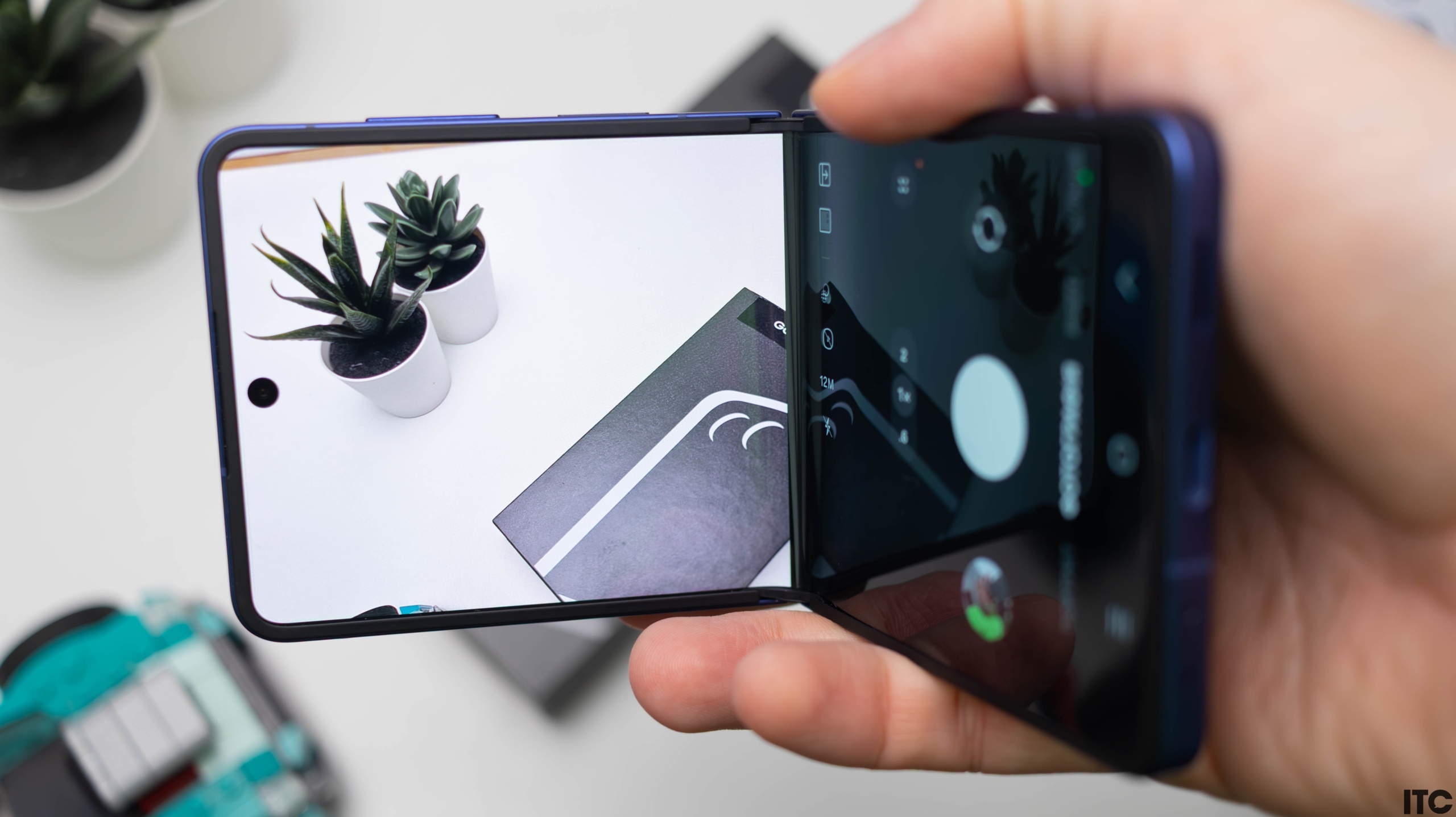 Також тут є режим FlexCam. Він дозволяє зафіксувати смартфон у напіввідкритому стані і використовувати його як штатив. Хочете зняти влог, таймлапс, групове фото з таймером — просто поставте телефон літерою L на стіл і знімайте. Це реально зручно і працює.