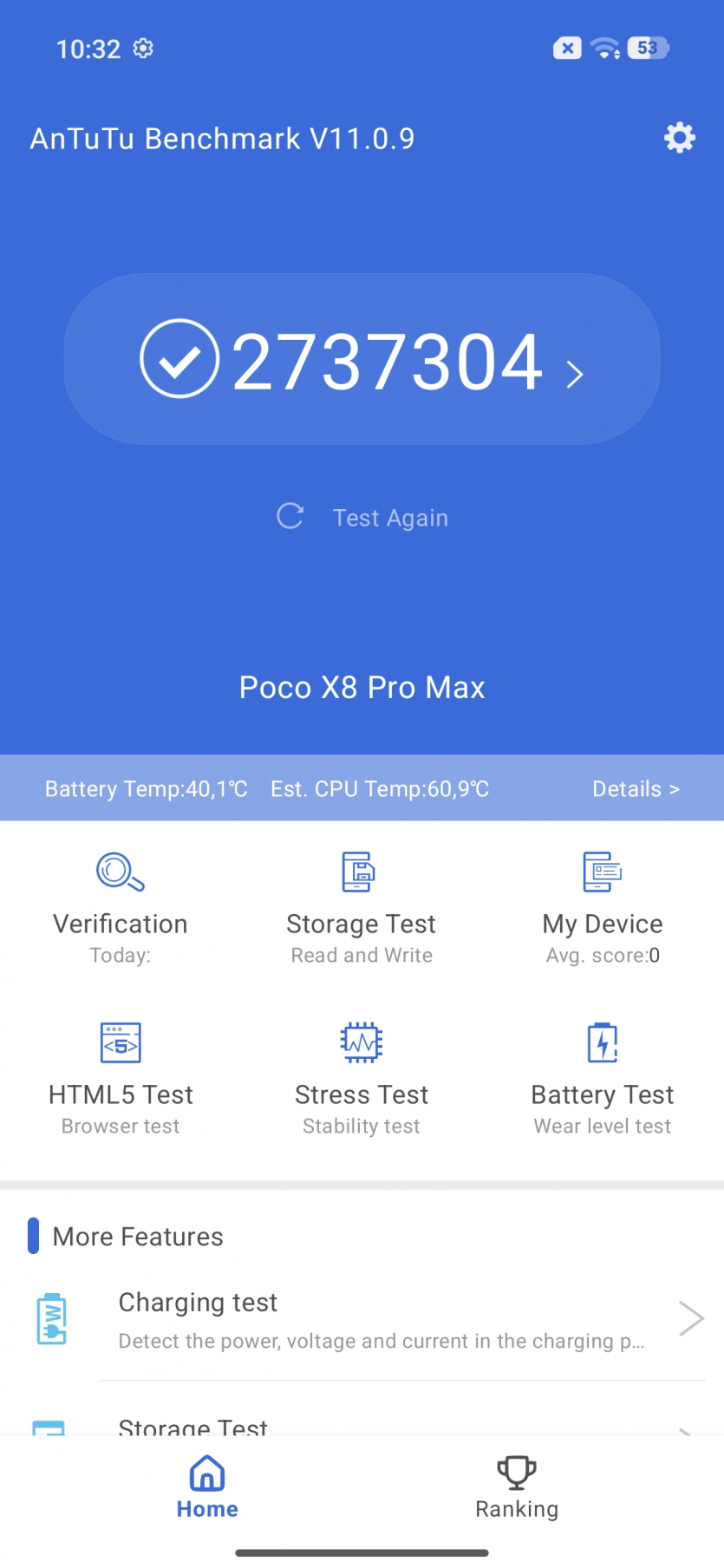 Результати тестів в різних бенчмарках дивіться нижче. Також бачимо що процесор сильно гріється, але з такою потужністю я не здивований.