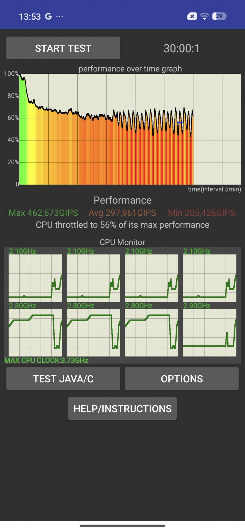Під час тривалих сесій смартфон, звісно, нагрівається, а руками це відчувається лише трохи. Тут є система охолодження IceLoop з площею контуру 5800 квадратних мм і я думаю вона непогано справляється зі своїм завданням. Проте фізику не обдуриш, тому після тривалого інтенсивного навантаження частоти чипа трохи знижуються для контролю температури. В реальних іграх для кількості FPS це взагалі некритично, але корпус все одно може бути гарячий, та й ви просто повинні про це знати.