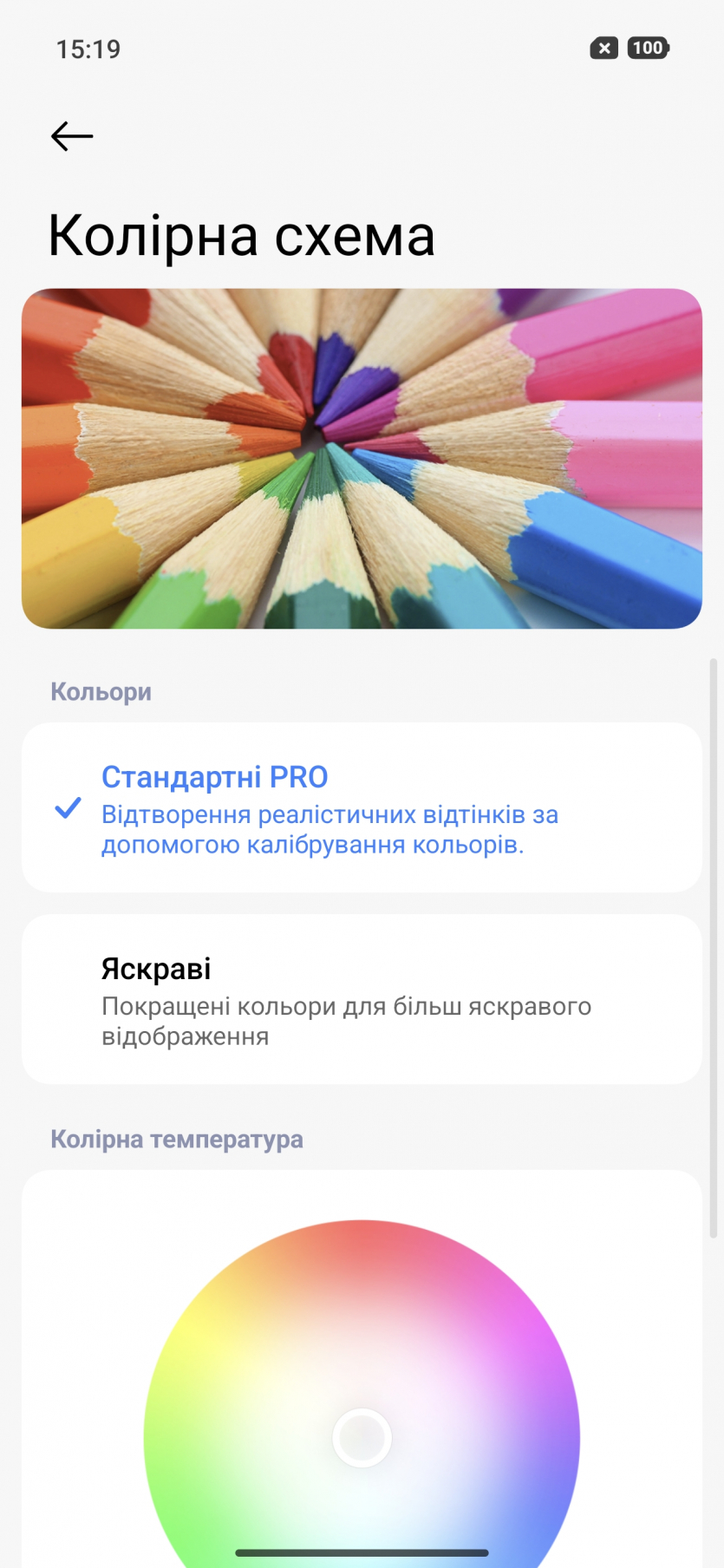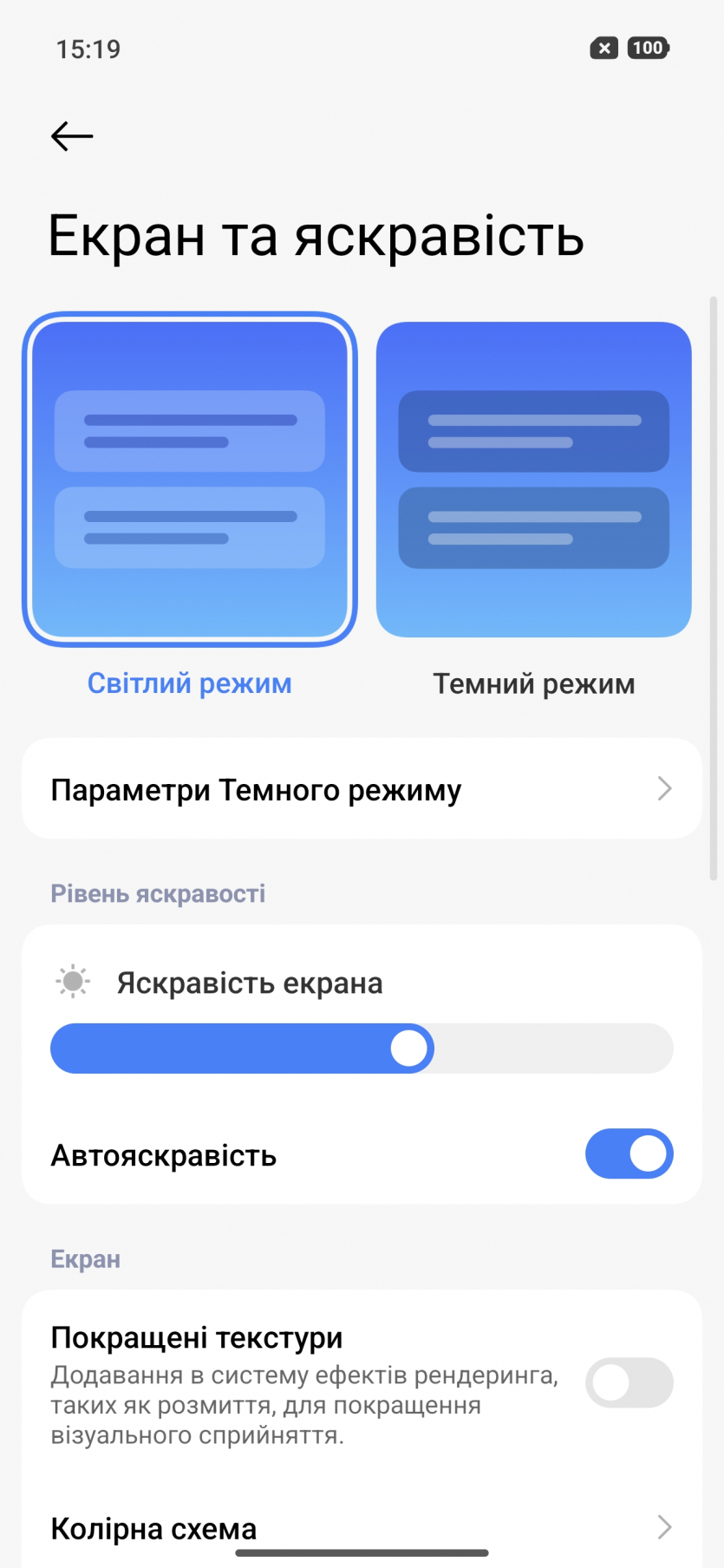В налаштуваннях є кілька профілів кольору, нічний режим і режим читання. Є Always-On Display з розумними опціями активації, але він працює максимум 10 секунд. Я знаю тих, хто заносить це в мінус, бо вони користуються цією функцією повноцінно, але я до них не належу. Я думаю, що 10 секунд плюс наявного автоматичного режиму, який активує AOD, коли ви дивитеся на екран, цілком достатньо для безпроблемного користування.