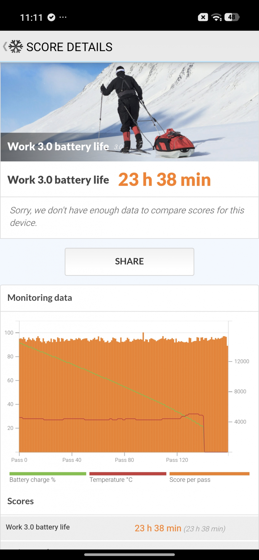Наприклад, в одному тесті я не грав, але усі інші звички з телефоном були на місці. Смартфон зняв із зарядки зранку першого дня, а поставив на зарядку в обід третього дня.