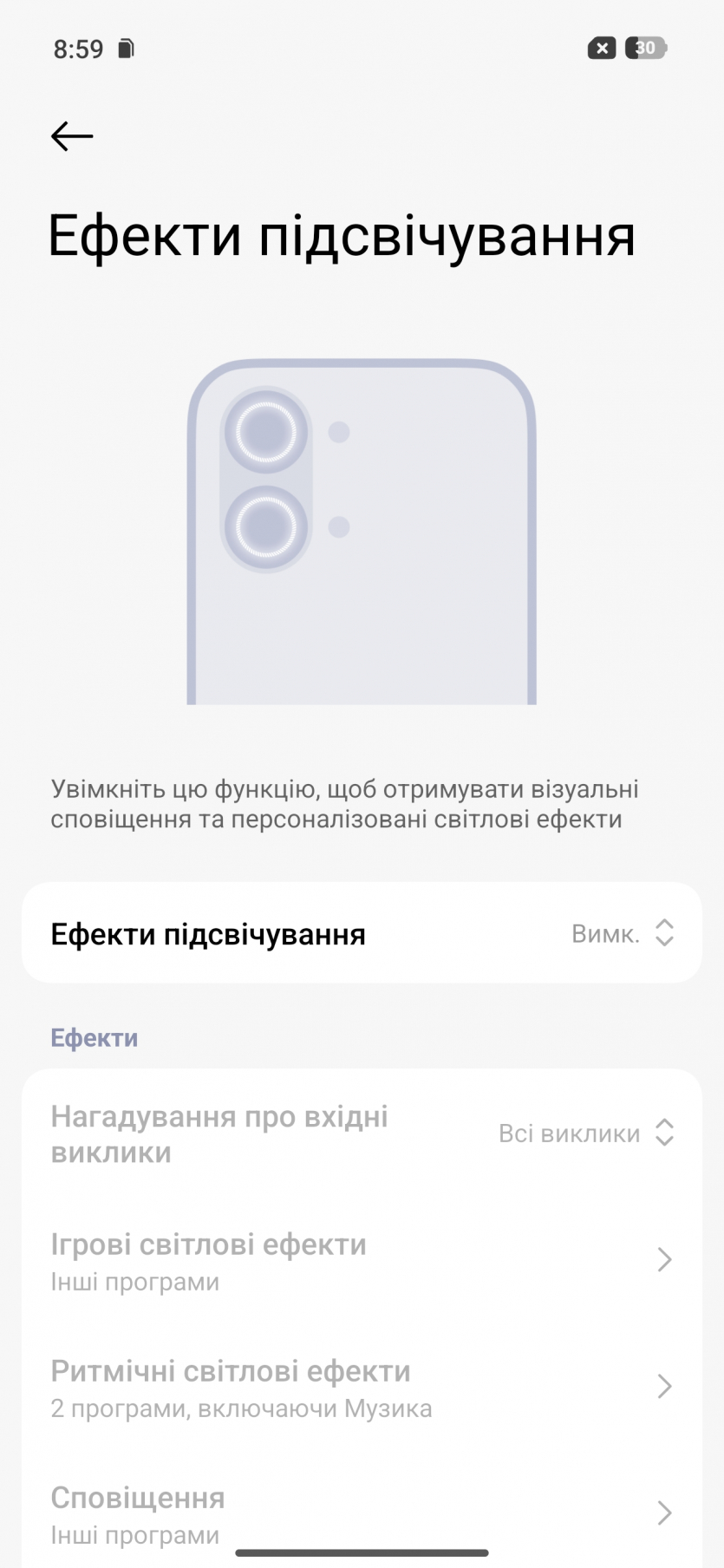 На задній панелі є круглий модуль камер, оточений динамічними RGB-кільцями. Вони світяться під час дзвінків і сповіщень у восьми кольорах. Дехто вважатиме це зайвим, а дехто залипне на хвилину, дивлячись як переливається підсвітка.