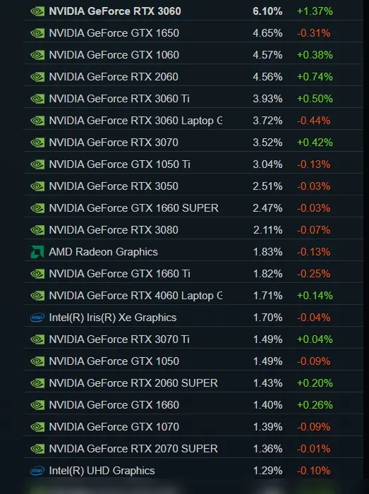 GTX 1060 швидко стала однією з найпопулярніших карт у Steam Hardware Survey протягом кількох років.