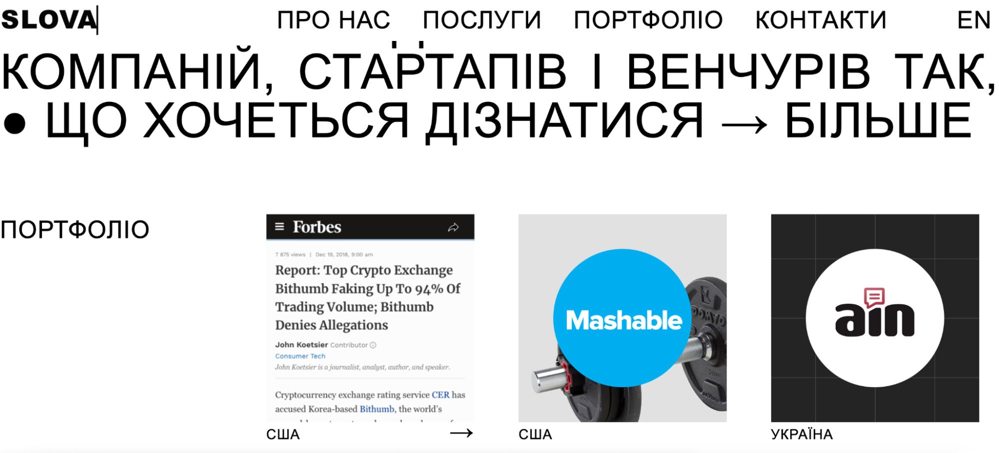 Агенція Creators працює зі складними технологічними нішами, серед яких deep tech, web3, AI, кібербезпека, виробництво, а також Saas, фінтехом, логістикою, інвестиціями, венчуром та роздрібною торгівлею.