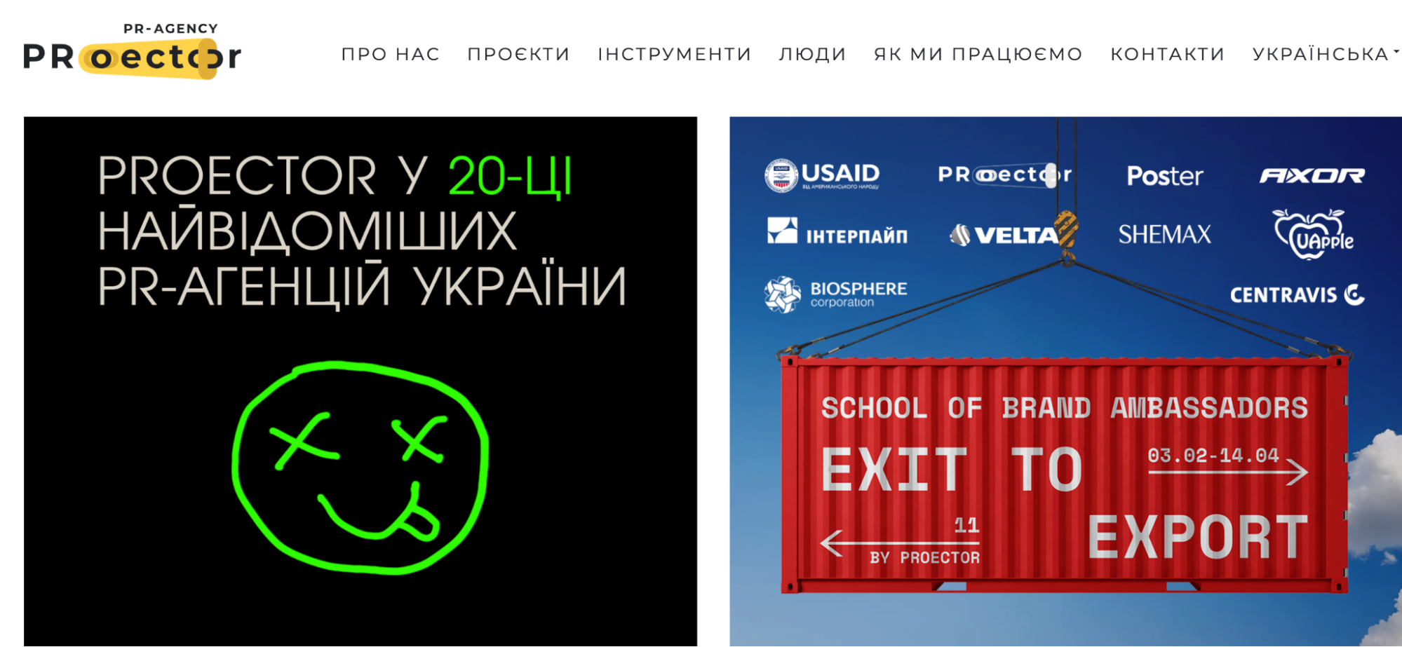 PRoector – агенція, що розробляє PR-стратегії, посилює репутацію клієнтів у національному інфопросторі, розробляє візуальну ідентичність, будує ESG-стратегії для бізнесу. Відомий кейс Metal for life для AB Metal Group – трансформація металобаз у шелтери та лікарні, з медіаохопленням понад 15 млн у 25 ЗМІ. Серед клієнтів PRoector: INTERPIPE, SHEMAX, Expolight, Balivka development та перша українська альпіністка, що двічі піднялась на Еверест – Антоніна Самойлова.
