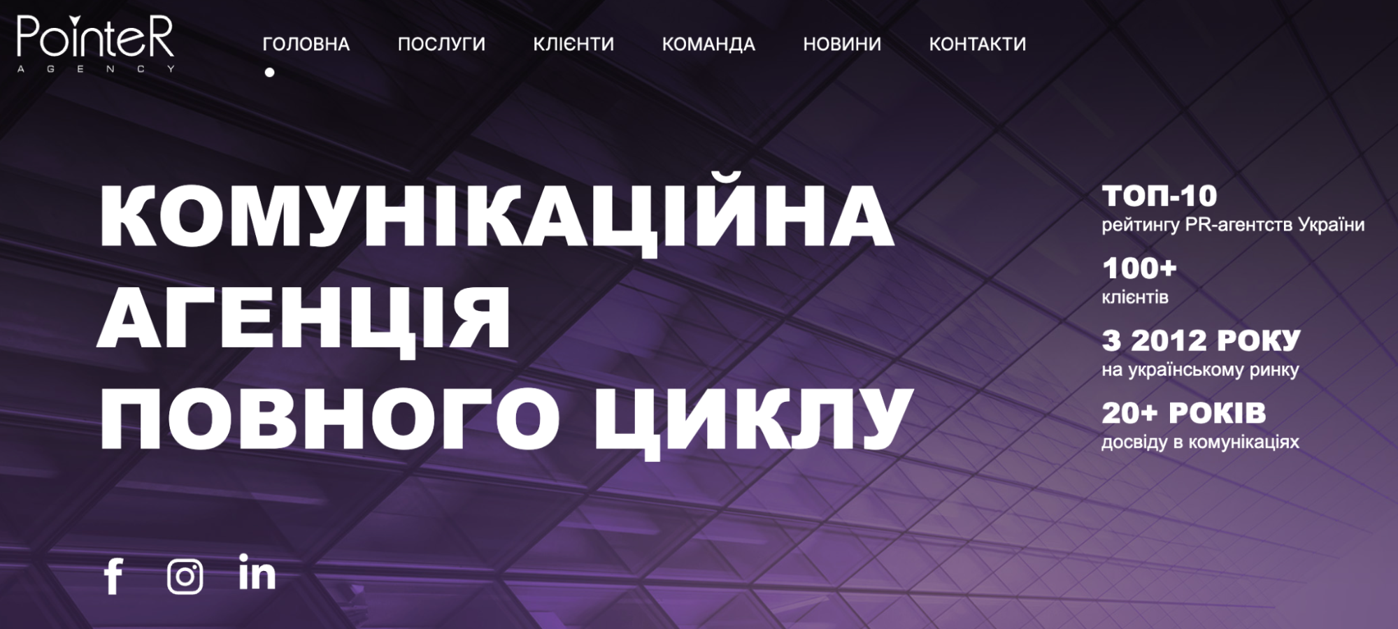 Pointer Agency – працюють з 2012-го у сфері PR-стратегій, репутаційного аудиту, кризових комунікацій. Реалізували понад 100 кампаній, серед клієнтів — Versace, Subaru, Samsung, Avon, а також Мінсоцполітики.