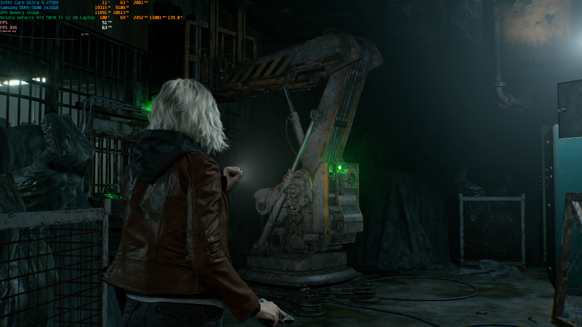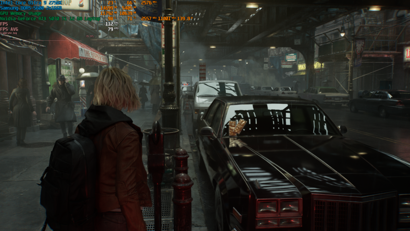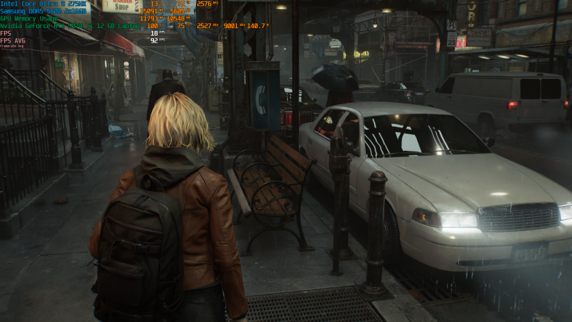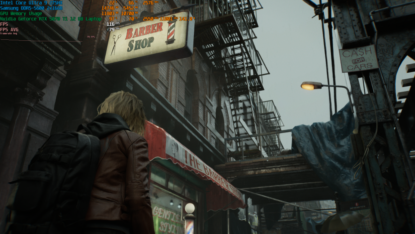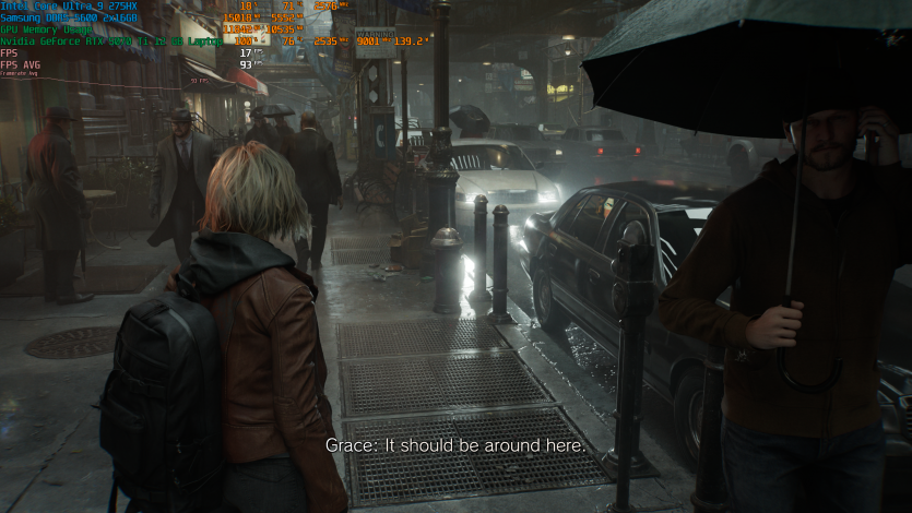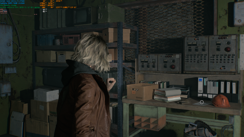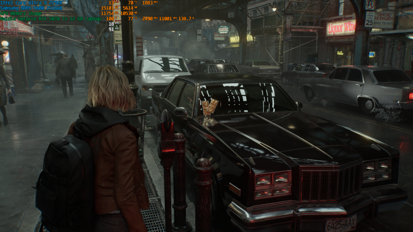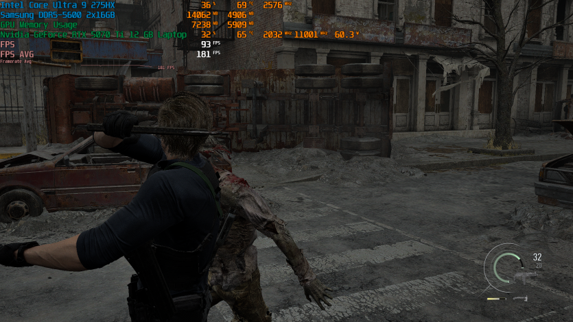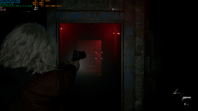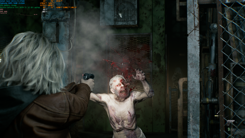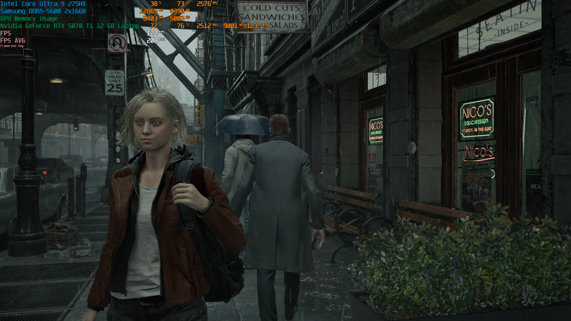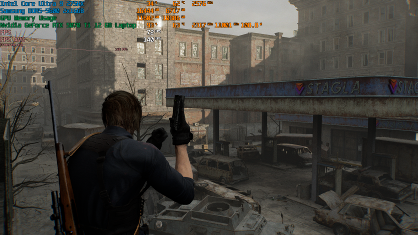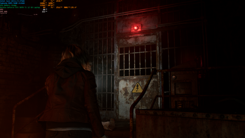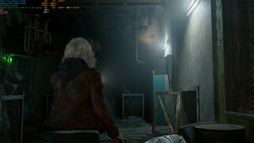Запустивши Resident Evil Requiem, і обравши пресет DLSS Quality + MFG X4, маємо 136 FPS на десктопі та 103 FPS на ноутбуці. Для мобільної 5070 Ti це сценарій, який робить 4K реалістичним, а не номінальним режимом.