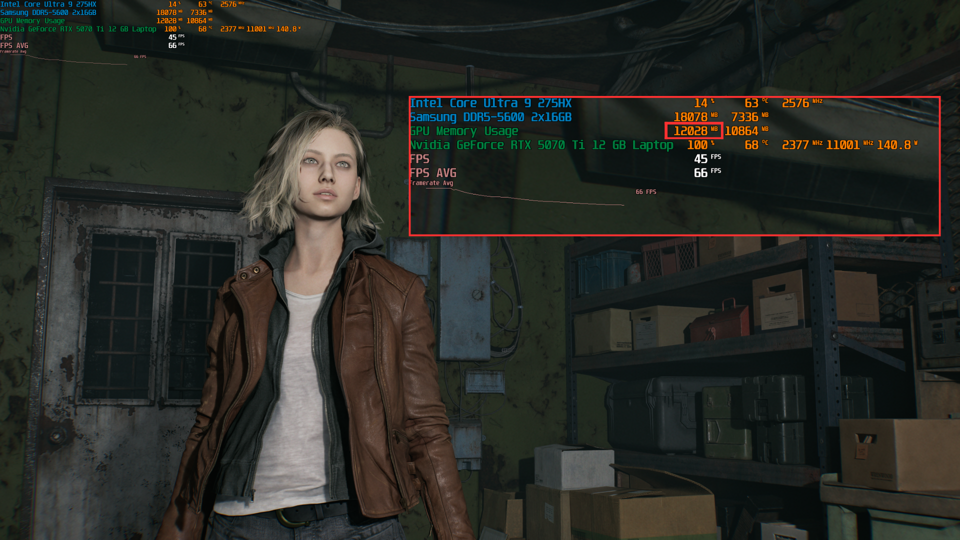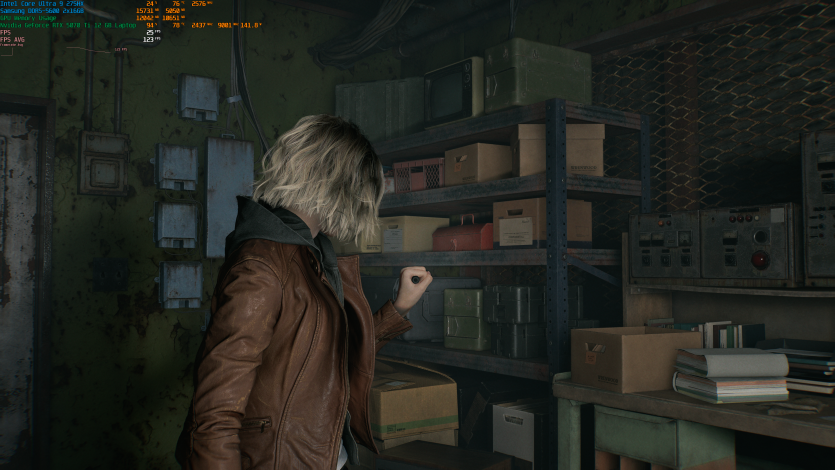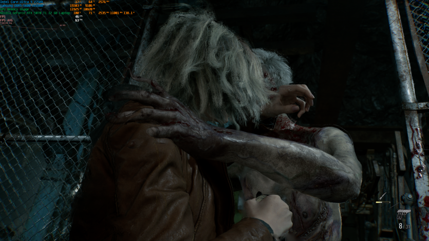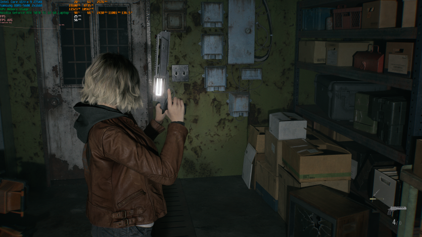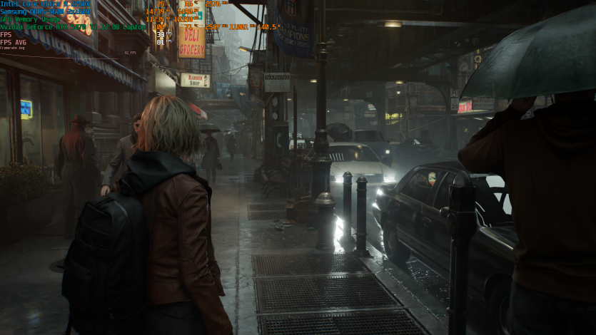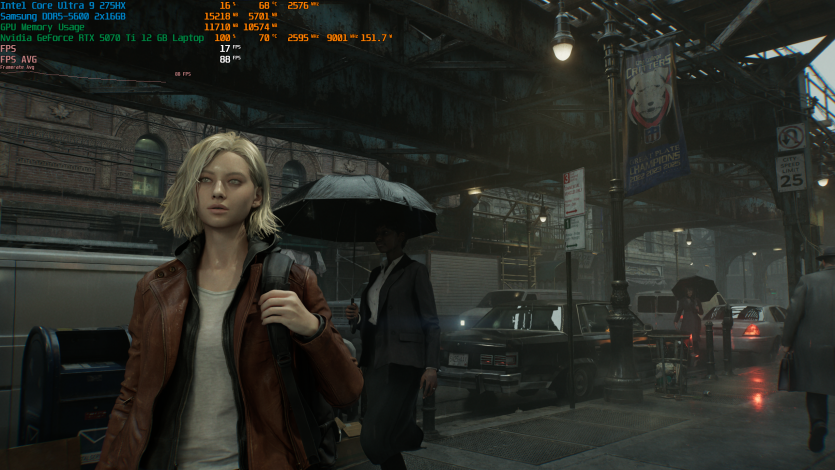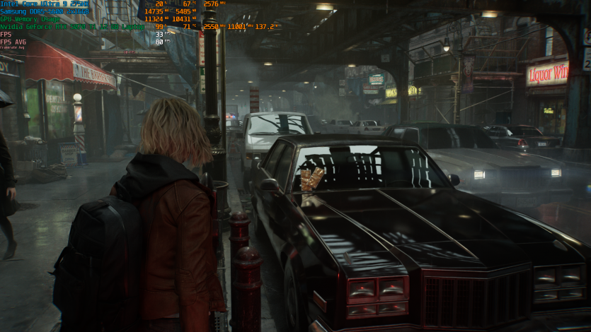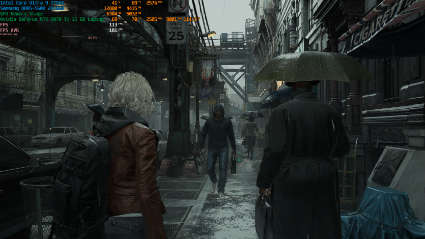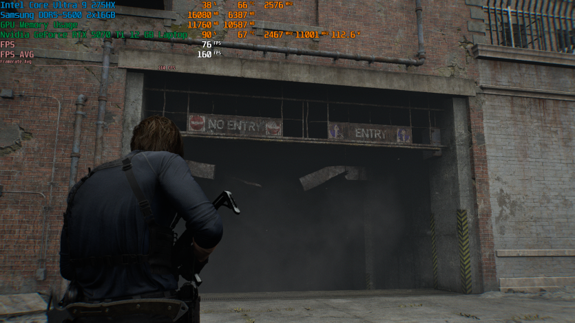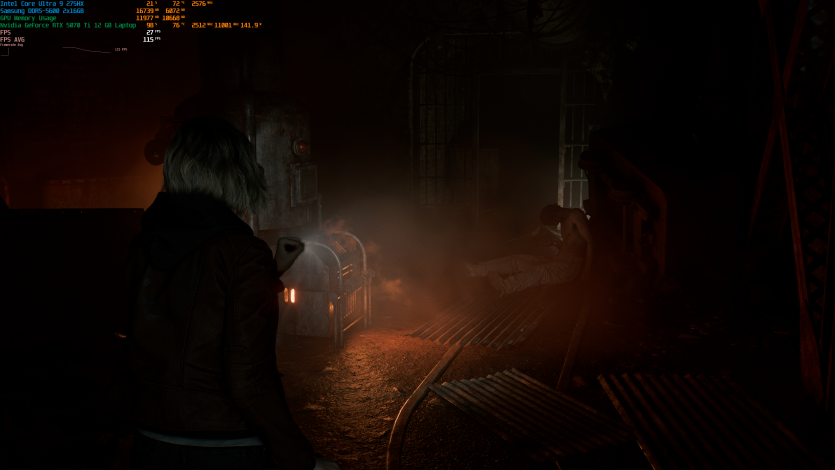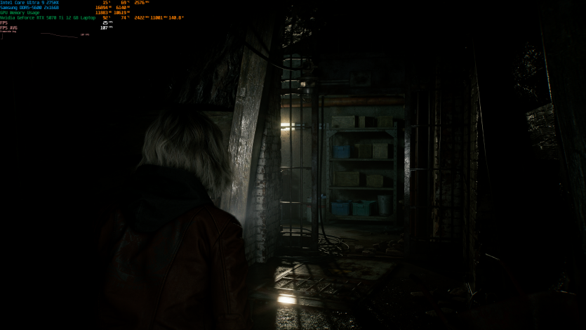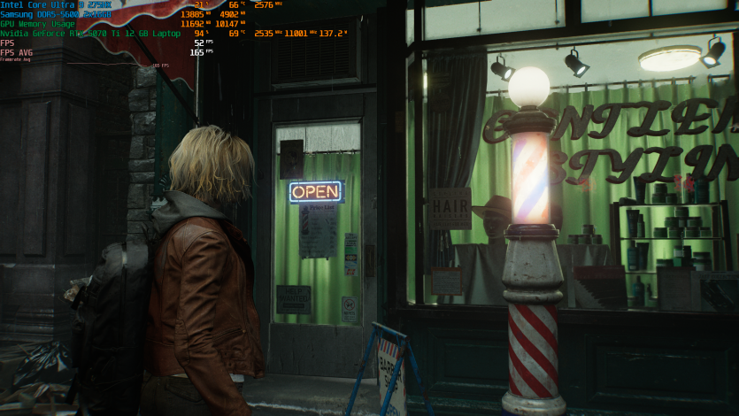 Запустивши Resident Evil Requiem, і обравши пресет DLSS Quality + MFG X4, маємо 136 FPS на десктопі та 103 FPS на ноутбуці. Для мобільної 5070 Ti це сценарій, який робить 4K реалістичним, а не номінальним режимом.