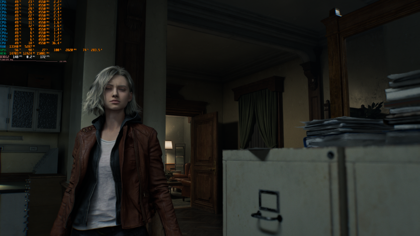 Незважаючи на всі технічні нюанси і просідання FPS у складних режимах, картинка Resident Evil Requiem виглядає фантастично. Path tracing у поєднанні з RT-тінями, RT-відбиттями та фізично коректними матеріалами створює надзвичайно реалістичну гру світла і тіні. Матеріали, текстури та поверхні набувають об’єму: скло блищить природно, метал відбиває світло так, що відразу помічаєш його фактуру, а волосся й тканини реагують на рухи персонажів максимально живо.