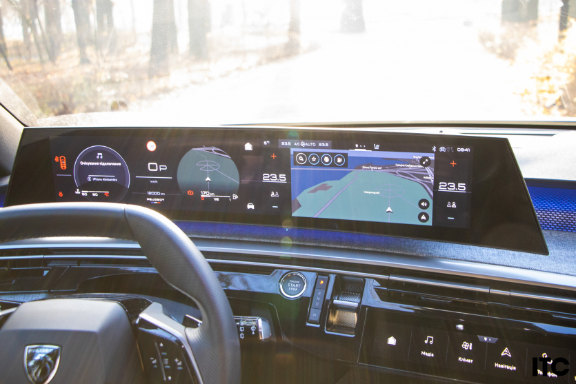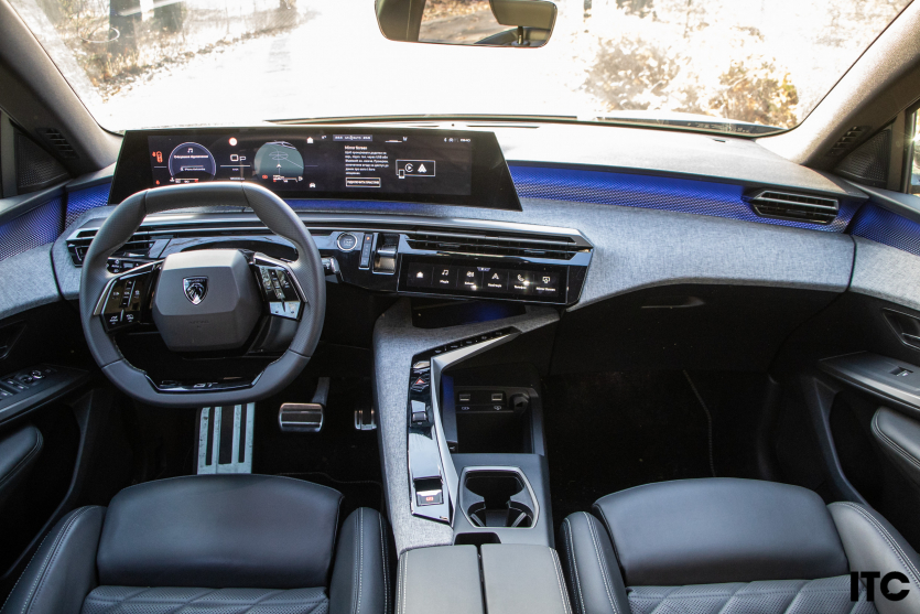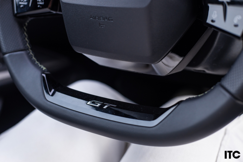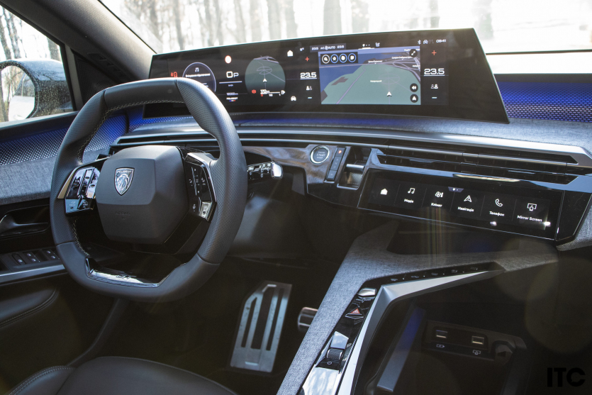 Сівши всередину, перше, що ти помічаєш – це магічний i-Cockpit і фірмове кермо. Воно маленьке, скошене зверху і знизу. Частенько чоловіки буркочуть: “Ой, воно перекриває прилади!”. Дурниці. Якщо ви налаштуєте сидіння правильно (а в GT діапазон налаштувань просто космічний, плюс є висувна подушка для підтримки ніг – мій мастхев для довгих ніг), то кермо опиняється десь внизу, як штурвал гоночного боліда, а приладова панель – прямо перед очима, наче проєкційний дисплей. І зручно, і правильно, і легко.