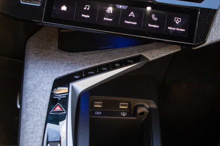 Загалом у французів загальний вигляд важливіше за функціонал чи ергономіку. Здається, про яку зручність може йти мова, коли велика ємність для зберігання на центральному тунелі ховається від водія, але задум глибший ніж здається на перший погляд. Бо сховати там всякі дрібниці дуже зручно, наприклад, кабелі підключення смартфонів. Для водія – бездротова зарядка така, щоб зайвий раз не чіпав телефон в принципі.