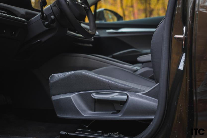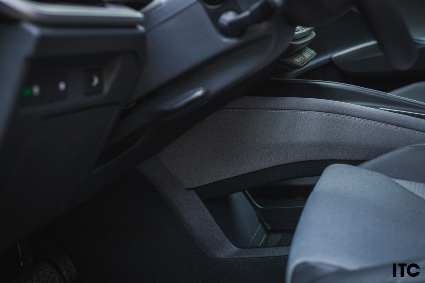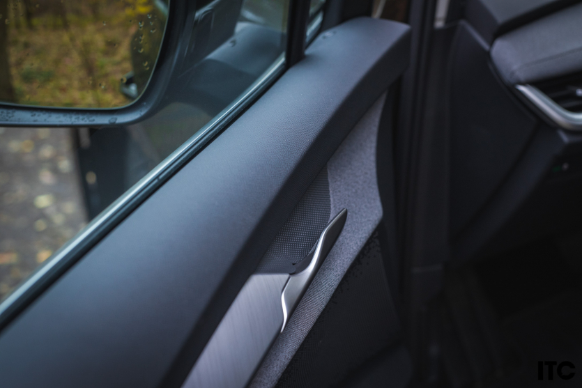 Занурююсь в крісло нового Enyaq. Салон зустрічає мене тишею: ні звуку двигуна, ні традиційного гудіння лише тиша та легкий тон гудіння під час руху. Я вже знайома з електрокарами, але тут усе наче спеціально по-людськи: високий посадковий рівень, зручна посадка, хороший огляд дороги. Тепер тут замість комплектацій вибір стиля салону та опцій. В нашому випадку поки єдиної комплектації в Україні – стилістика Loft. Тканева оббивка в стилі “Джинс” сірих відтінків. Вона дублюється в оздоблені торпедо та карт дверей.
