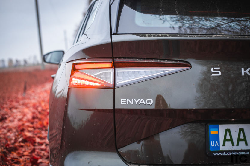 Доповнює образ глибший, більш витончений погляд тонких світлодіодних фар та перероблені задні ліхтарі. Тепер його оточує “спідниця” з сірого пластикового обвісу. Тільки мені здається, що Enyaq виглядав би більш нетривіально в кольорі Steel Grey, що більше підкреслювало б його особливість.