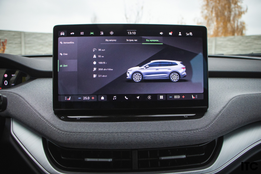 А ще однією з можливостей Enyaq 85, яка у 2025 році для нас дуже актуальна, є двосторонній потік енергії. Тобто електромобіль здатен живити цілий будинок. Звичайно він підтримує швидку зарядку до 135 кВтгод і підживити акумулятор до 80% за 28 хвилин – швидше ніж в “Макє” зроблять каву. Залишається лише не тільки знайти таку потужну станцію, але і щоб там було світло.